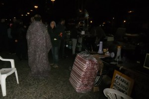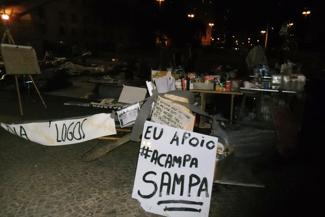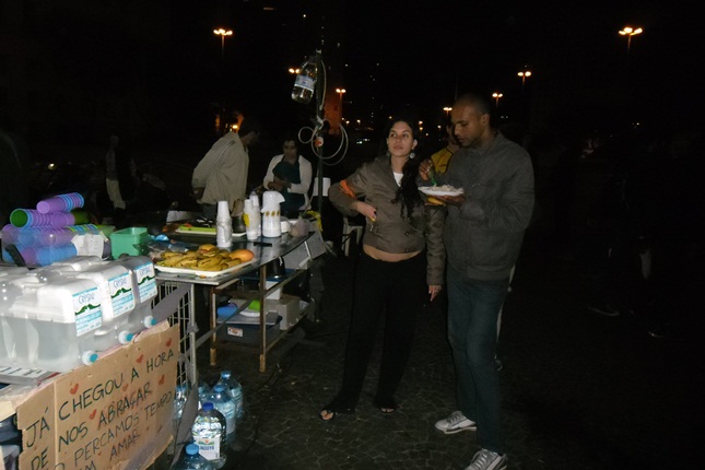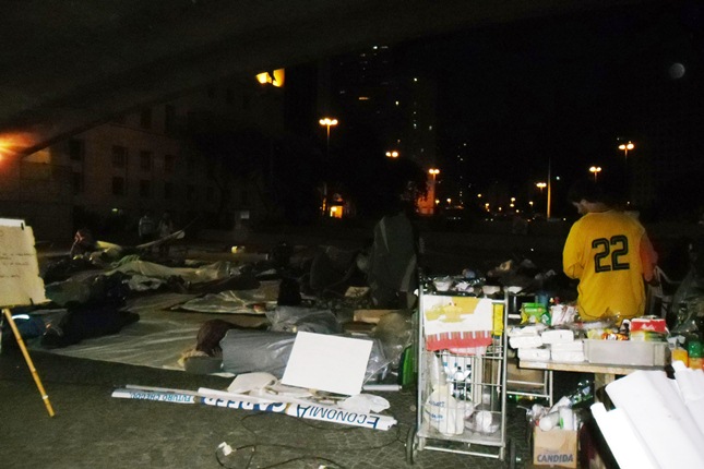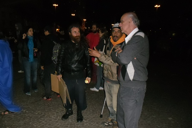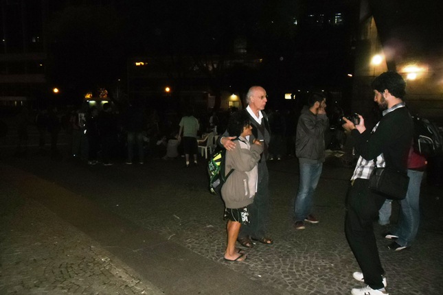 Na fria noite desta terça-feira, 18/10/11, o Padre Júlio levou cobertores no local dos acampados no Anhangabaú, que estão dormindo junto aos moradores de rua. Jovens indignados, com seu protesto pacífico e ordeiro. O brilho nos olhos desses jovens com ideal somente é ofuscado pelo sofrimento da parte mais fragilizada da população e que estava ali, juntos, os moradores de rua. Os cobertores logo foram repassados a esses sofredores. Ponderações, discussões, teses colocadas, tudo com ordem e solidariedade. Cozinha comunitária, solidariedade. Notícias sendo transmitidas ali mesmo, pela internet.