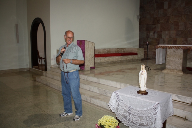 Ontém vi o nosso pastor o Pe. Júlio cansado, atento mas firme no nosso propósito, vi e ouvi vozes masculinas rezarem por todos e vi ali que a Igreja Católica pode sim ser UNA e APOSTÓLICA, agradeci ao Pe. Jesus pelo seu carinho e sua disposição em nos recepcionar e também pela disposição de participar de um novo terço em nossa paróquia. ele mostrou-se muito emocionado, feliz em ver seus paroquianos participarem com força e vontade. Acredito que esta é uma forma de evangelizarmos e mostramos um caminho peregrino. Que Maria interceda junto a Deus e nos fortaleçam e nos guiem. Amém!