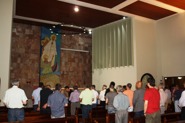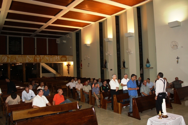 No ano da fé, homens da Comunidade São Miguel Arcanjo, nesta sexta-feira, reuniram-se na Paróquia e em caravana de carros foram para a Paróquia São Pedro (Rua Ibitinga), para com nossos irmãos de lá, rezarem juntos o Terço dos Homens. Já passava das 21h15 quando o Terço foi iniciado e, perseverantes, rezaram com fervor . Como sempre e mesmo no adiantado do tempo, a Paróquia São Miguel deu exemplo de efetiva participação e profunda devoção mariana.