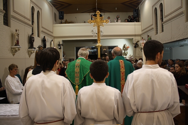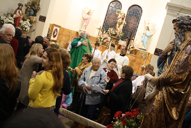 Pensando no comentário da Mariana, transportei-me no tempo e fiquei a imaginar que possivelmente o que aconteceu no domingo, com a chegada da imagem do querido São Paulo trazida pelos irmãos da Paróquia São José à P. São Miguel Arcanjo , deva ter sido a mesma experiência sentida pelas primeiras comunidades cristãs quando se reuniam, embora às escondidas em virtude da perseguição que sofriam, por amor ao Mestre Jesus.