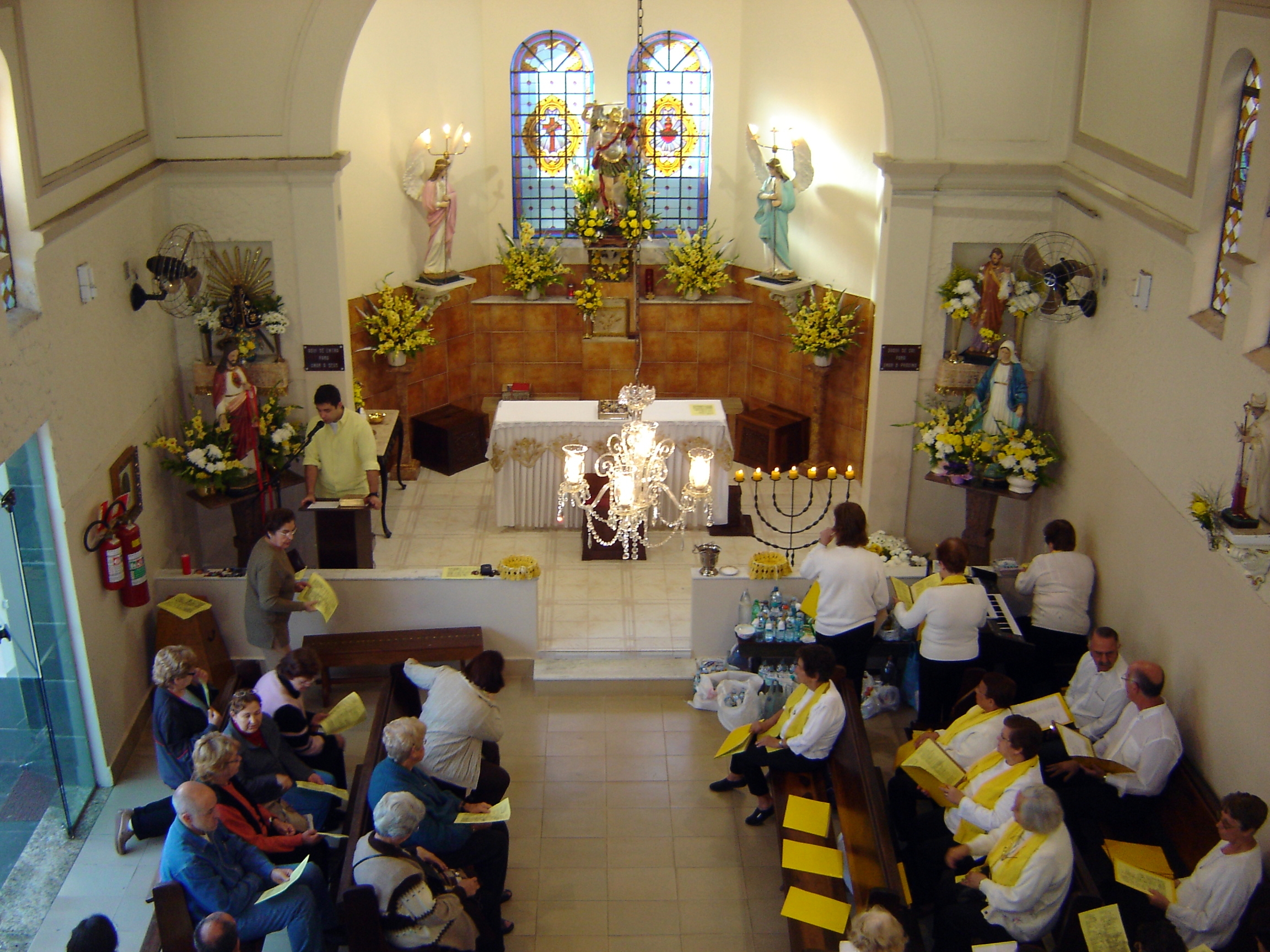 Ver as fotos da festa de Sao Miguel me deixou emocionada. Estou morando longe e sempre que participo da missa aqui, nao tem como nao lembrar da missa celebrada pelo Padre Julio. Poder ver novamente o pessoal da comunidade eh muito bom. Ver o Davi que era uma crianca… como ele cresceu. Deixou meu coracao apertado de saudade. Em breve estarei de volta e nao perderei a missa de domingo por nada. Muitos beijos e saudades a todos da comunidade.