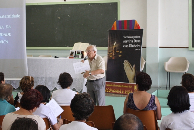O Vigário Episcopal, Pe. Cesar Gobbo, falou na abertura do encontro que a Campanha serve para questionar as estruturas mas também as pessoas: “enquanto o dinheiro está servindo a vida, tudo bem; ele não pode estar no coração, gerando dependência e inversão de valores”.