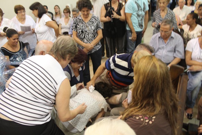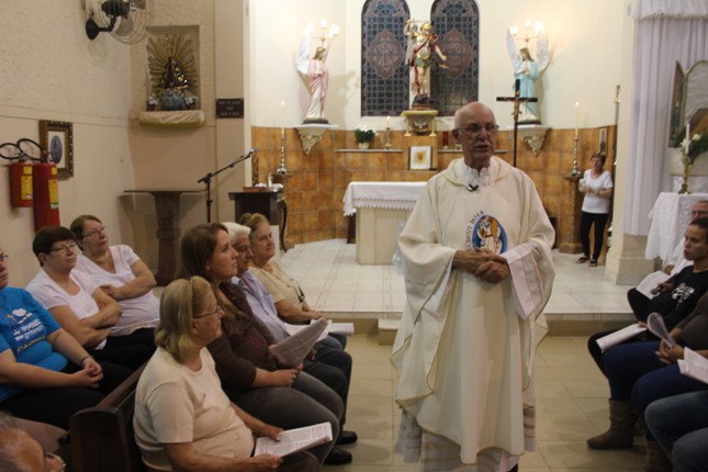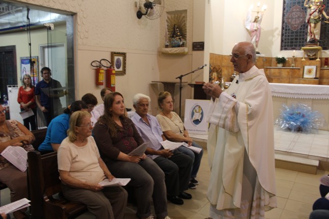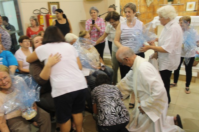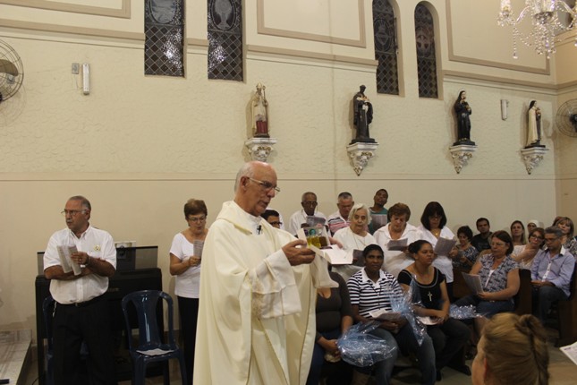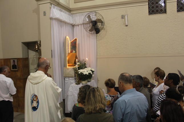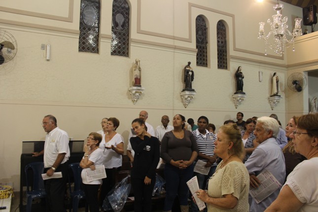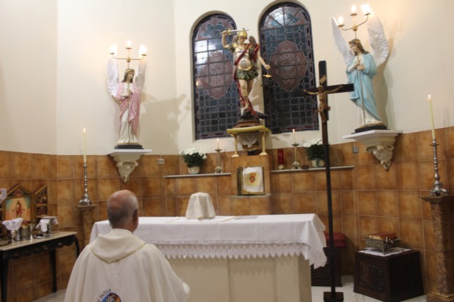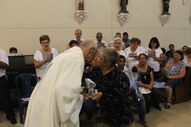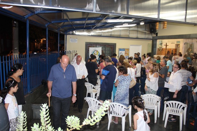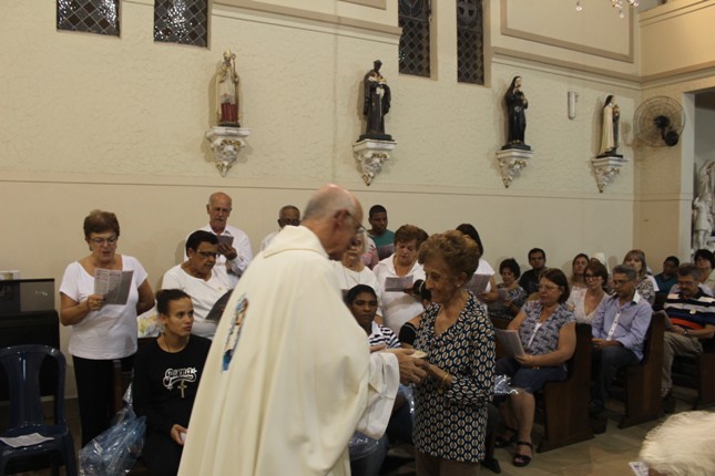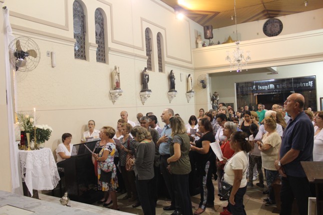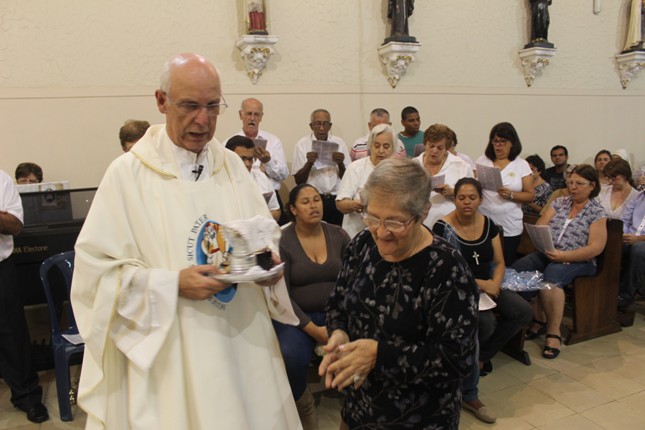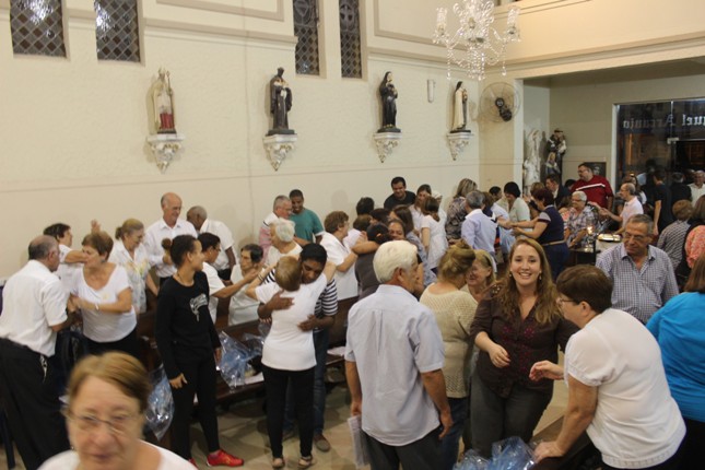 Quinta-feira Santa, 24/03/16 a Paróquia São Miguel estava lotada, como sempre, para a celebração eucarística, que nos lembrou a instituição da Eucaristia. O Pe Julio e a comunidade lavaram os pés das irmãs da Missão Belém e de pessoas da comunidade que passaram pelo problema da Dengue. No final da celebração o Santíssimo é retirado e levado em procissão para o altar da reposição. Na sequência a comunidade ficou em vigília.