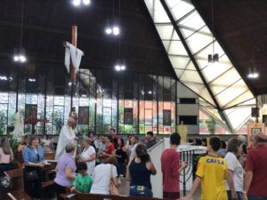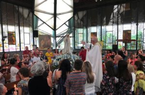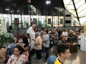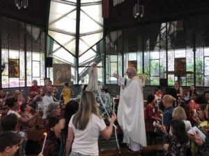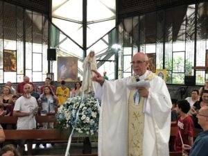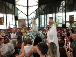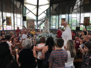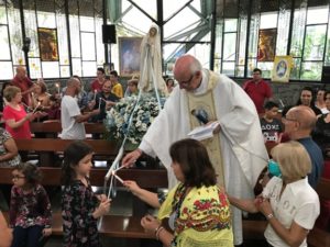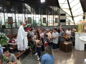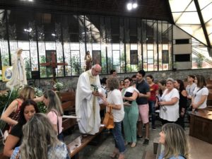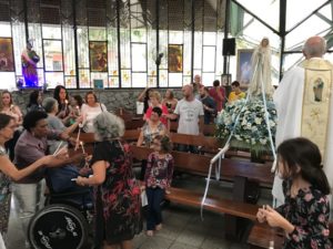 Neste 12/05, a celebração eucarística contou com a vinda da imagem de Nossa Senhora. Flores à nossa Senhora  homenagens as mães da Comunidade.