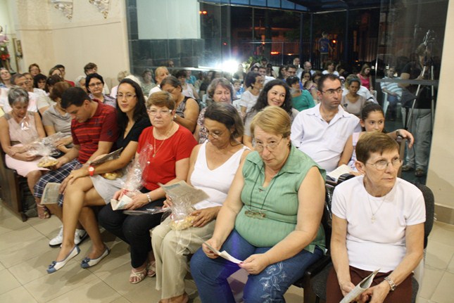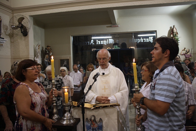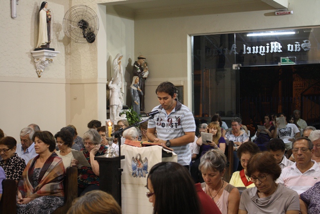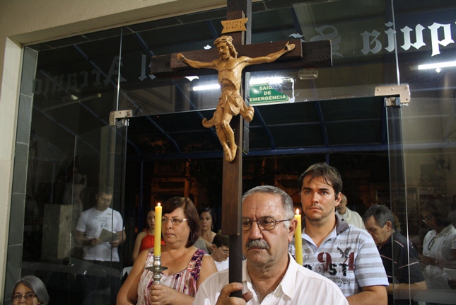 Na vigília, orações, cantos, silêncio e também o Terço. A reflexão da entrega de Jesus para nos salvar. No final, o canto: