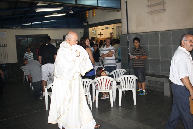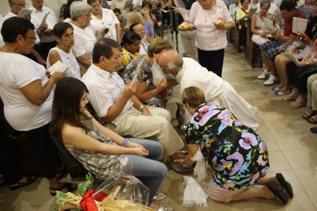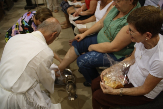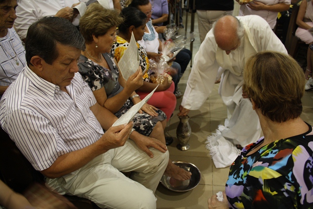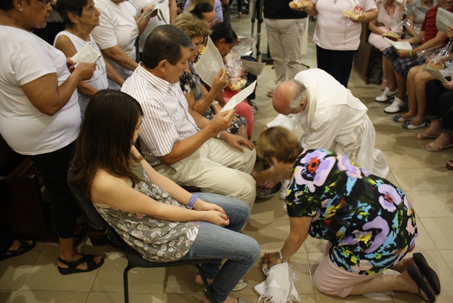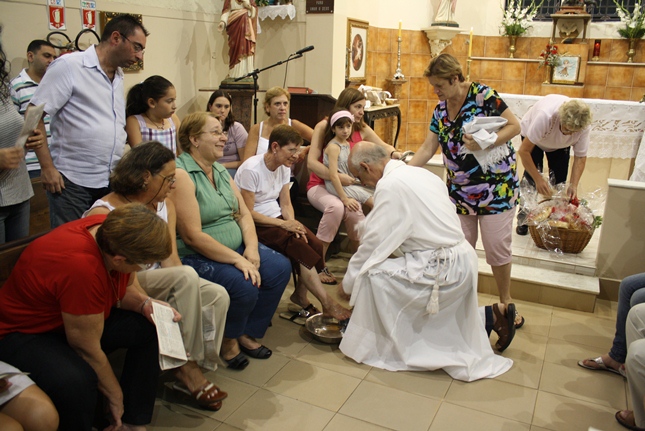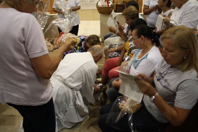 Num gesto simples, o Padre Júlio Lancellotti lavou os pés daqueles que cuidam da organização e da limpeza da igreja e da capela da Universidade São Judas Tadeu, bem como daqueles que se preocupam com a ecologia e também dos novos moradores do bairro. O gesto é servir, sem qualquer distinção.