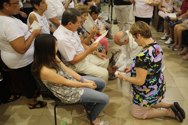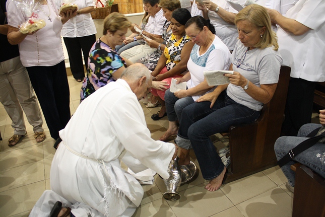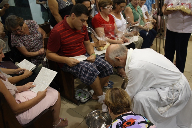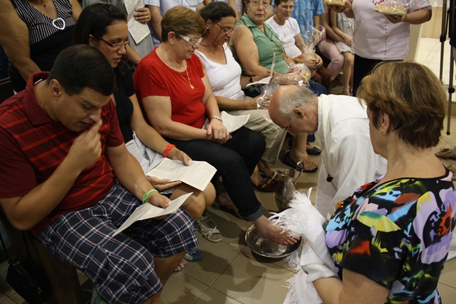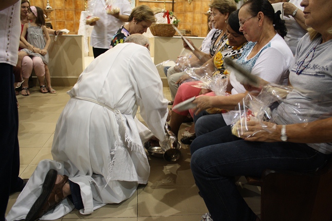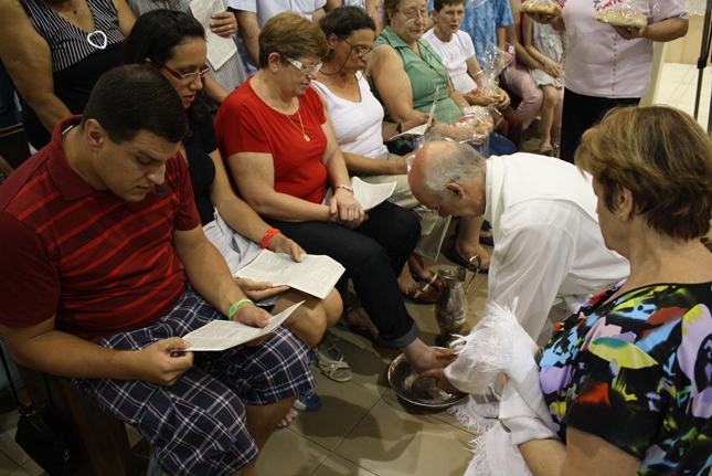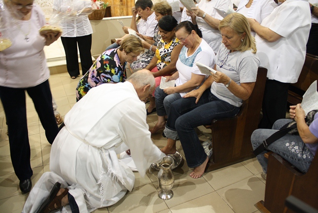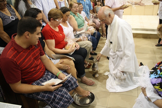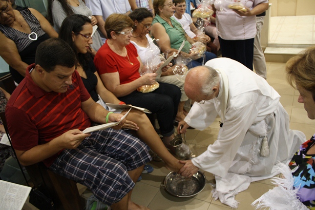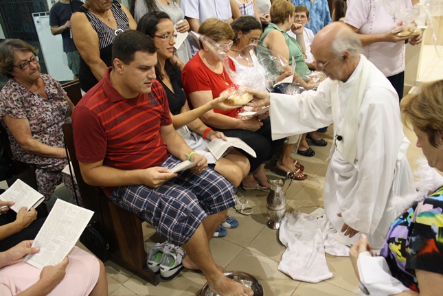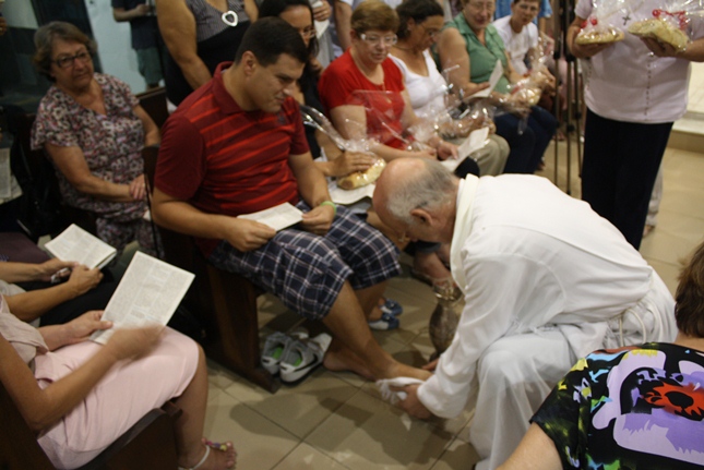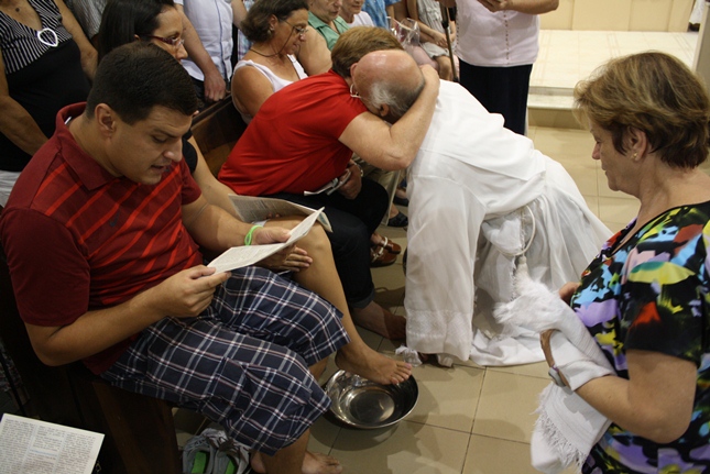Nessa missa da instituição da Eucaristia, toda a simbologia do servir. Iniciado o Tríduo Pascal, celebramos a ceia em que Jesus se entregou ao sacramento do Pão e do Vinho, repetindo o gesto de lavar os nossos pés.