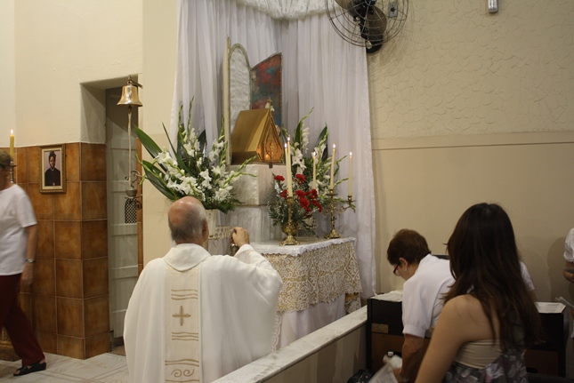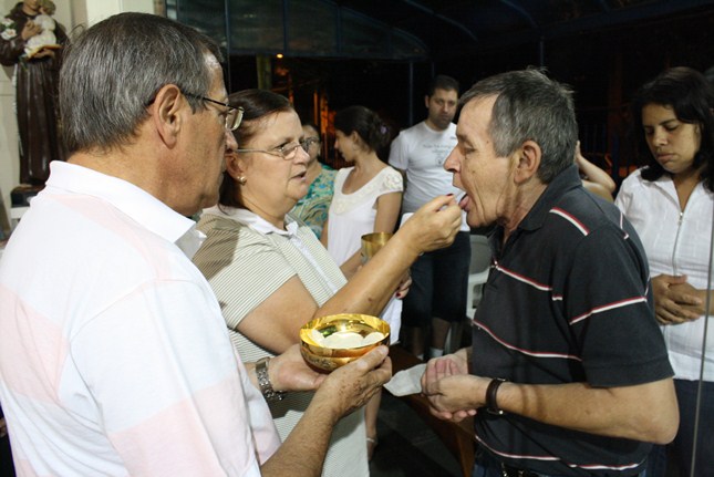 “Durante a ceia, antes de enfrentar a Cruz, quis ficar com seus amigos para ser a sua luz. Como alimento, o Sagrado Coração entre nós ficou presente neste vinho e neste pão.”