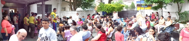 O Natal Pastoral da Criança da Comunidade São Miguel Arcanjo foi antecipado. Aconteceu neste sábado, 14/12/13 no Centro Comunitário. Os voluntários capricharam, os colaboradores foram, como sempre, muito bondosos, alegrando as crianças e seus pais. Até as crianças da catequese ajudaram e participaram. Os jovens estavam lá com a participação de sempre. Kemi, foi o menino Jesus deste ano, de origem boliviana, como muitos outros, e igualmente acolhido. Emoção, alegria, sorrisos, trabalho, mas o sorriso de cada criança é inesquecível. A Lorrana ficou emocionada ao ouvir uma criança, abrindo seu presente dizer: “Que lindo”. Cada colaborador fica com esse agradecimento, que certamente foi repetido por cada criança. Um agradecimento especial às voluntárias da Pastoral da Criança, que seguindo as orientações da também inesquecível Dra.  Zilda Arns, fazem um trabalho tão importante, que alcança os vários aspectos da saúde e inclusão social.