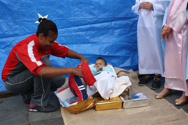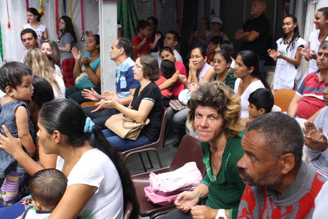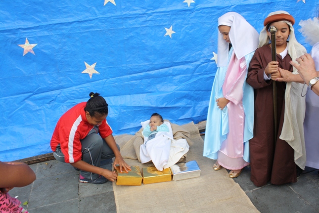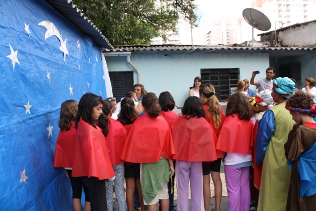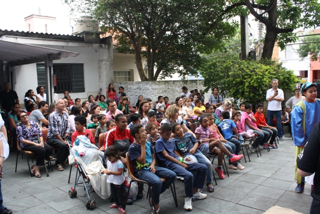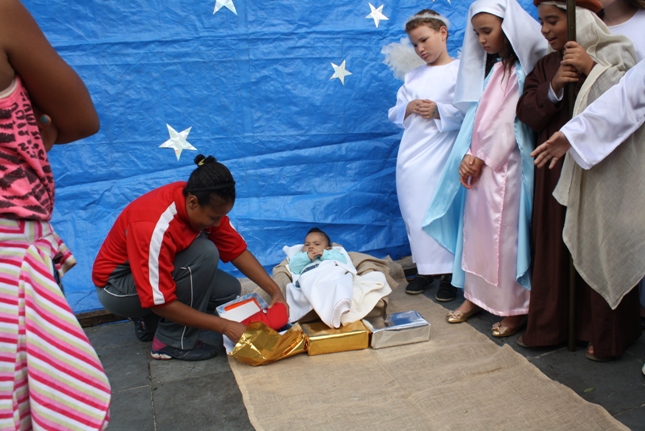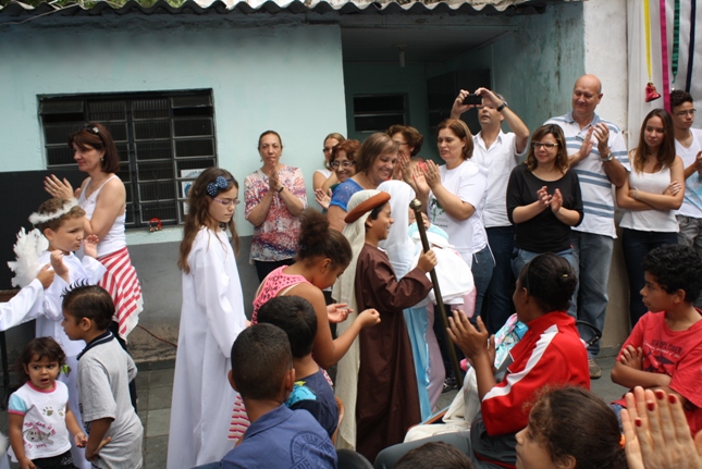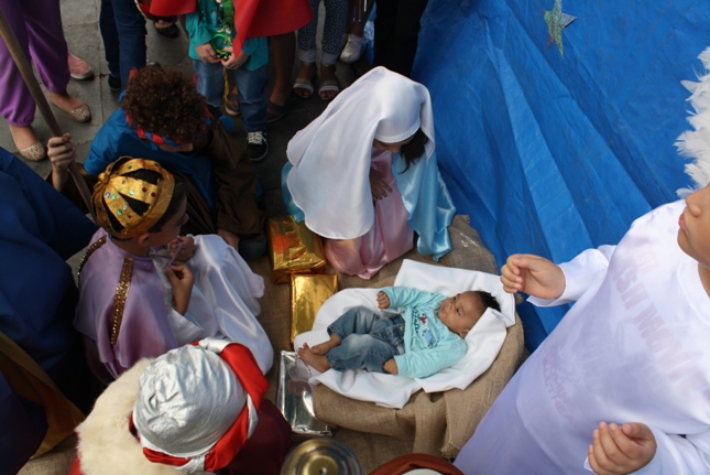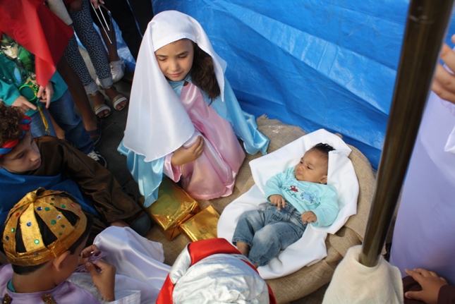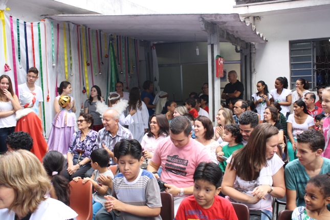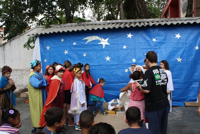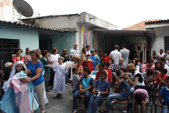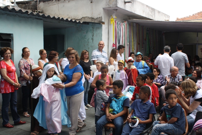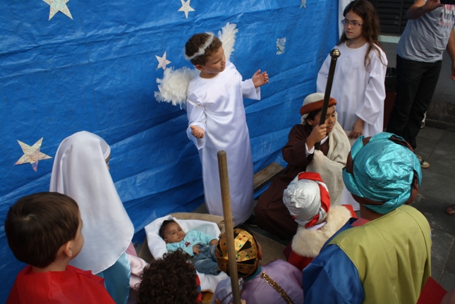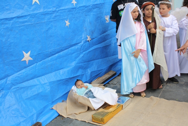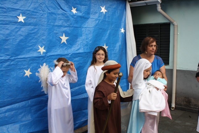 A Pastoral da Criança fez a tradicional festa de Natal no sábado, 20/12/2014, no Centro Comunitário da igreja São Miguel Arcanjo. Teve encenação no nascimento de Jesus e a distribuição dos presentes que a comunidade gentilmente disponibilizou. Não faltou animação, alegria, participação e presentes. A mãe do nosso menino Jesus logo abriu os presentes, ficando contente com um deles, um agasalho para o período futuro de frio. Simplicidade, acolhimento, felicidade. Vejam as fotos:
