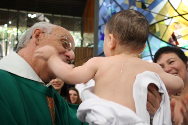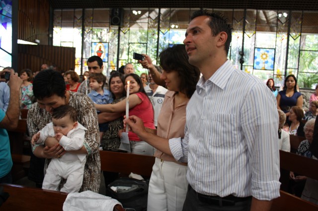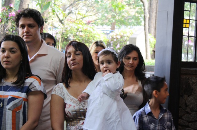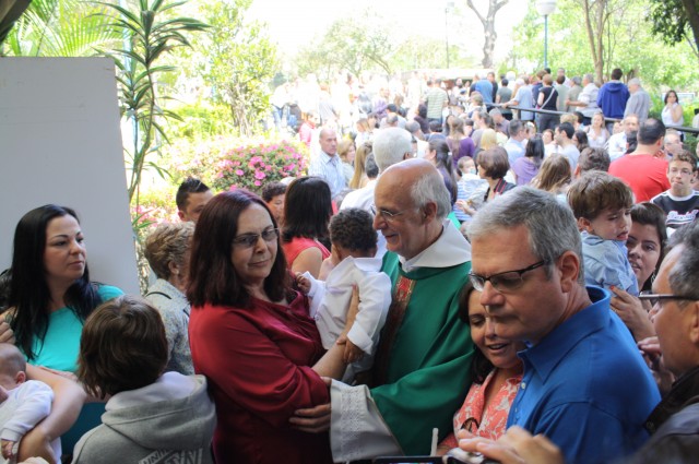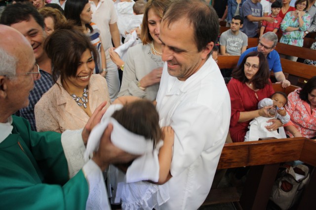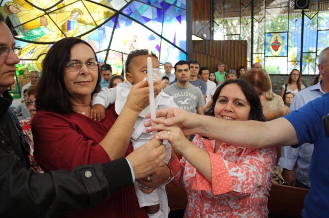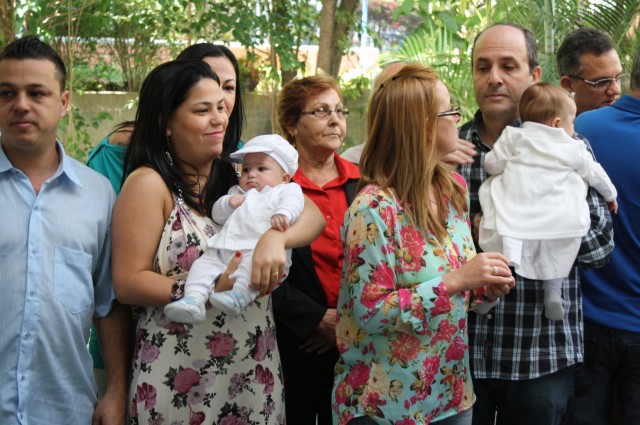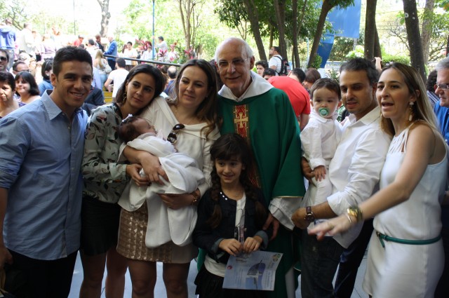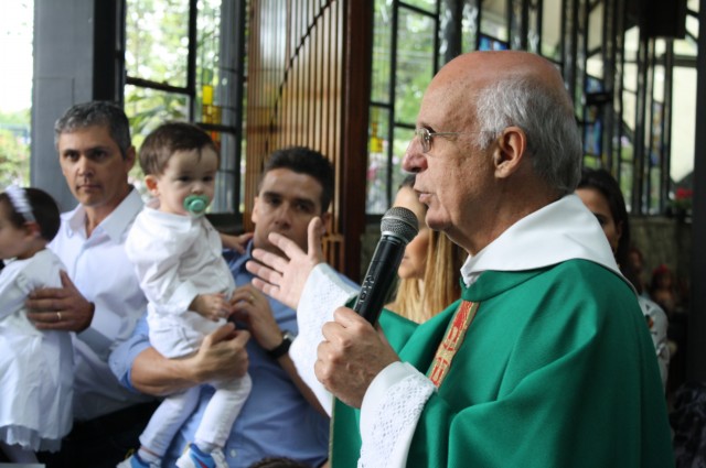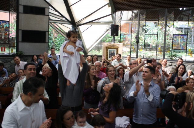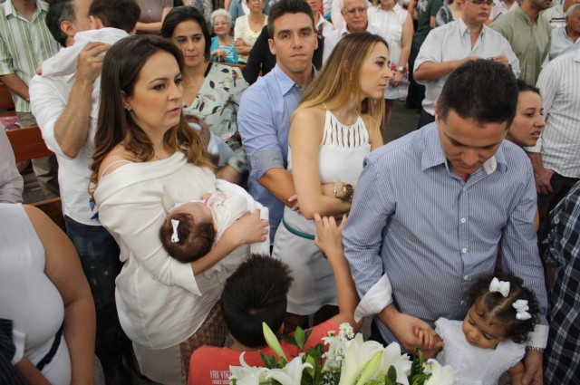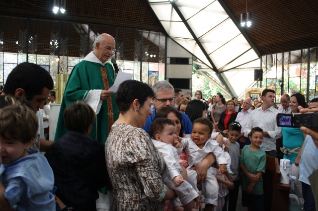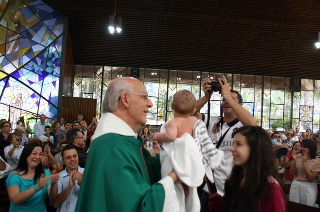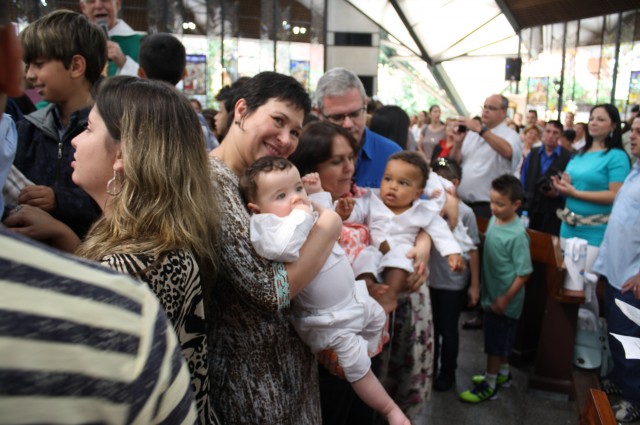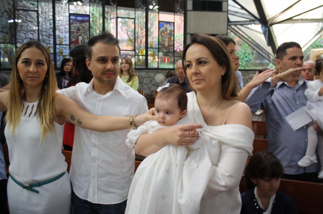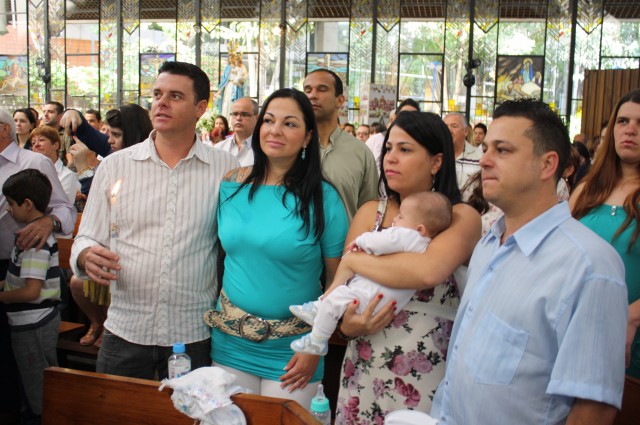 Na bela manhã do dia 26 de agosto, 13 crianças receberam o sacramento do batismo. Em uma inspirada celebração, Pe. Júlio lembrou aos pais e padrinhos que eles devem ensinar a seus filhos e afilhados que o plano que Deus tem para cada um de nós é o amor. A partir de agora as crianças Julia Batistel Grillo, Klauss de Souza Infante, Rhamon Magano Moreira dos Santos, Isabella Torres Colombo, Gabriel Elias Lacsko Trindade, Enzo Scaramuzzi Osti Ignácio, Arthur Micai, Maria Clara Santos Fonseca, Mariana Bezerra Malho, Mikael Santos Luz, João Pedro Caliman, Vinicius Santos Dálvio, Ricardo Monteiro Albino e Maria Alice Silva Martins fazem parte do Povo de Deus, povo que trilha o caminho do bem, da justiça e do amor.