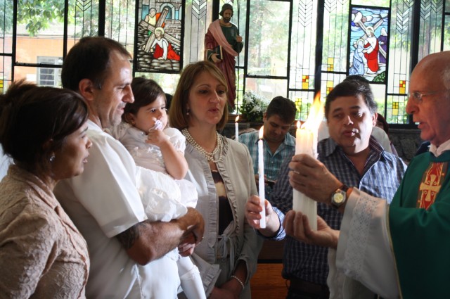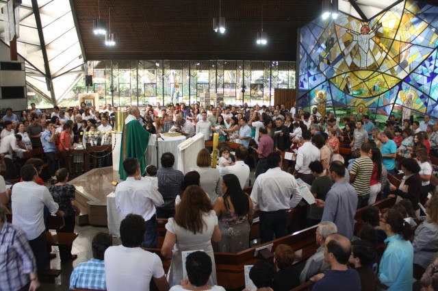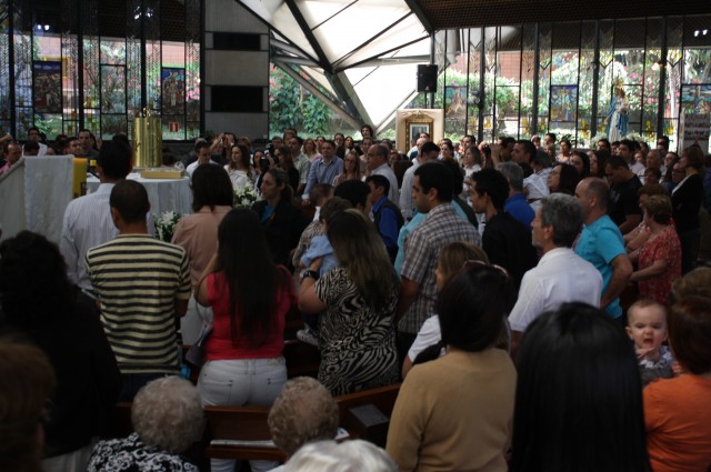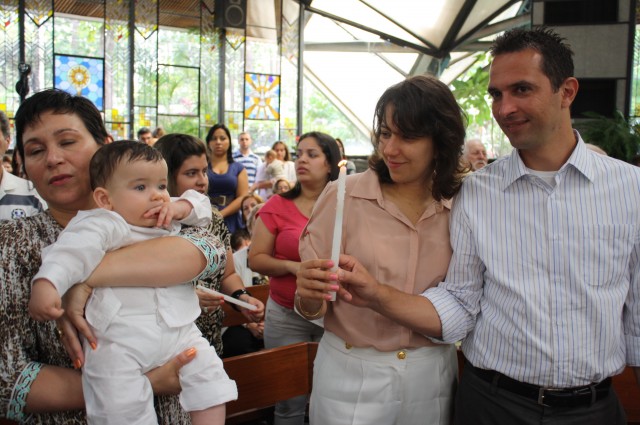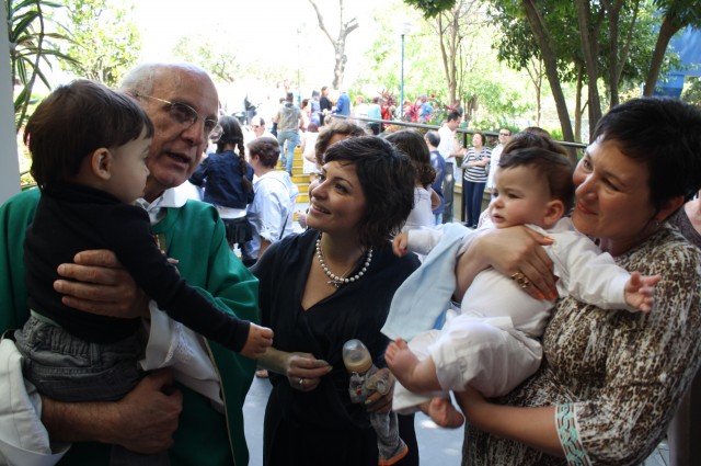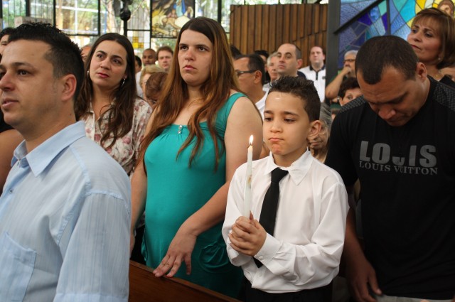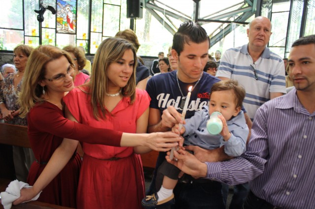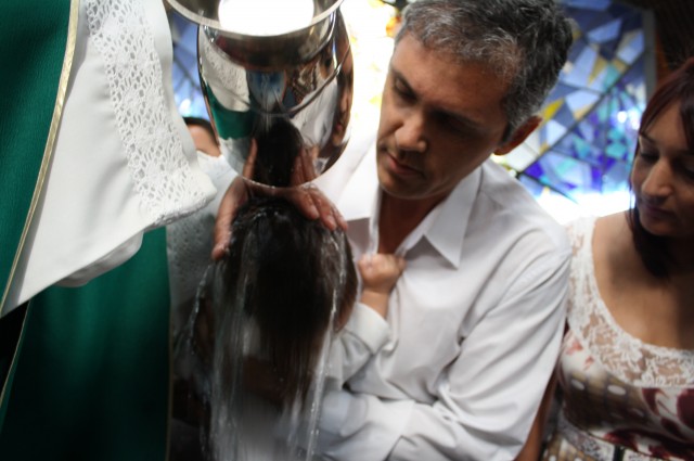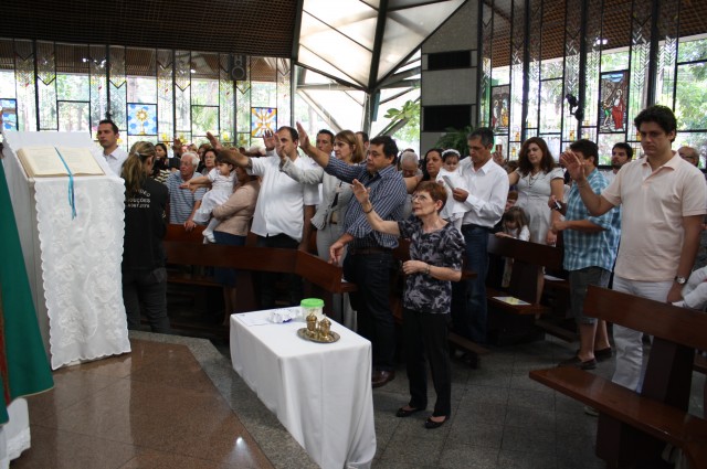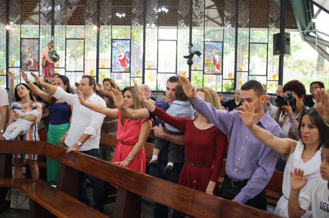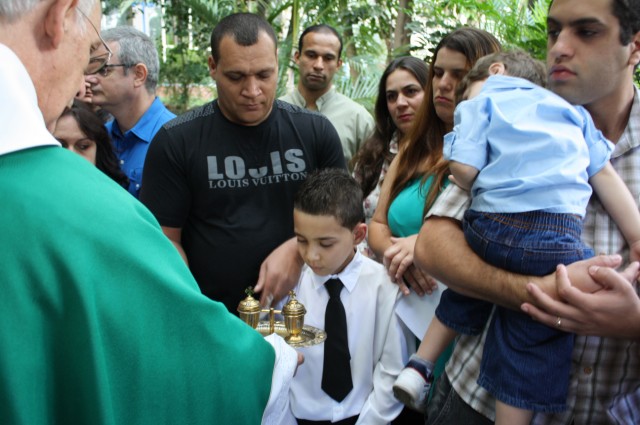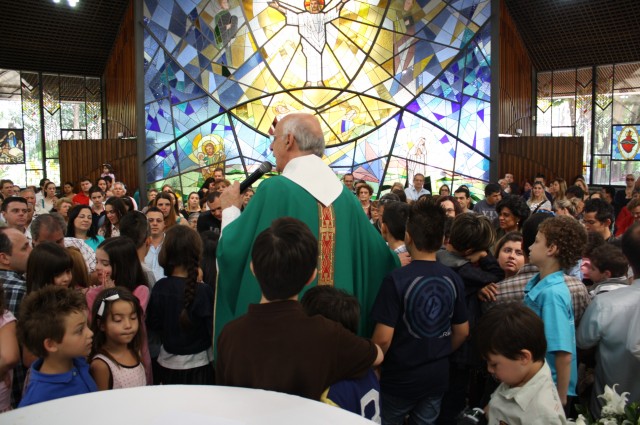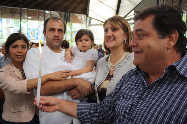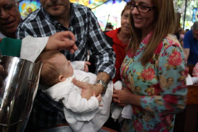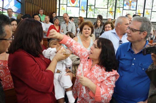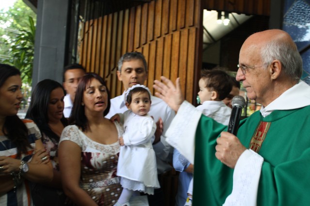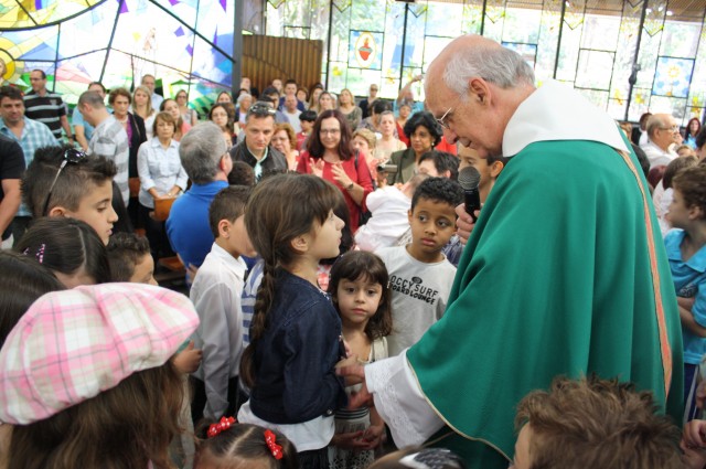 Na bela manhã do dia 26 de agosto, 13 crianças receberam o sacramento do batismo. Em uma inspirada celebração, Pe. Júlio lembrou aos pais e padrinhos que eles devem ensinar a seus filhos e afilhados que o plano que Deus tem para cada um de nós é o amor. A partir de agora as crianças Julia Batistel Grillo, Klauss de Souza Infante, Rhamon Magano Moreira dos Santos, Isabella Torres Colombo, Gabriel Elias Lacsko Trindade, Enzo Scaramuzzi Osti Ignácio, Arthur Micai, Maria Clara Santos Fonseca, Mariana Bezerra Malho, Mikael Santos Luz, João Pedro Caliman, Vinicius Santos Dálvio, Ricardo Monteiro Albino e Maria Alice Silva Martins fazem parte do Povo de Deus, povo que trilha o caminho do bem, da justiça e do amor.