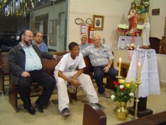 As pessoas vão chegando e logo a Igreja está com muitos para rezarem. Alguns chegam direto do trabalho, outros da Toca de Assis, da Casa Vida. Também recebemos amigos de outras Paróquias.