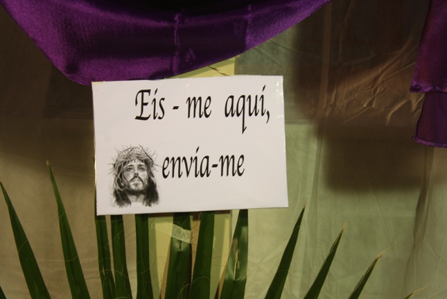 Na tarde desta Sexta-feira da Paixão do Senhor, o silêncio da Comunidade São Miguel Arcanjo e a oração. Foi Proclamada a Leitura do Profeta Isaias que já anunciava o sofrimento de Cristo. No Evangelho, o relato da Paixão de Nosso Senhor segundo João foi muito forte, passando por toda a perseguição, o julgamento, os pedidos de crucificação, a caminhada ao calvário, a Cruz, a obediência ao Pai, a presença de Nossa Senhora, a morte do Senhor. Depois participamos da adoração da Santa Cruz. Muitos ficaram em vigília até o horário da procissão.