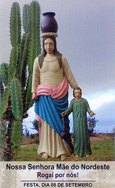 Nossa Senhora Mãe do Nordeste, torrão seco e sofrido, de gente honesta e trabalhadora que enfrenta a caatinga, os espinhos, a seca e o sol, as dores e o suor para viver com dignidade.