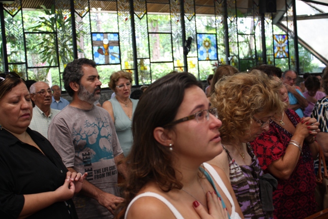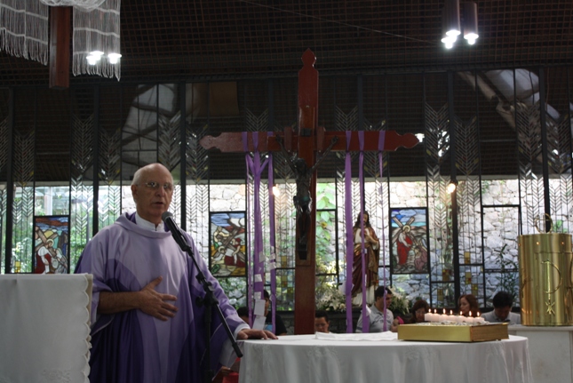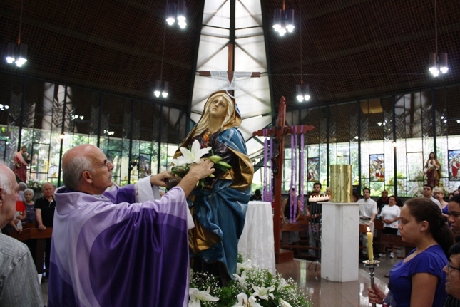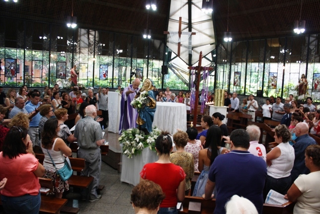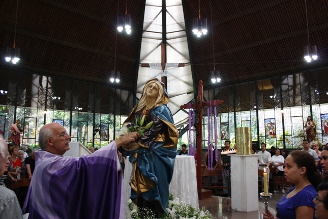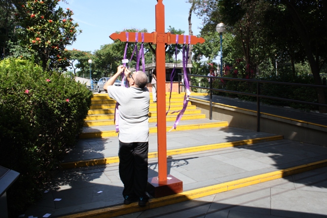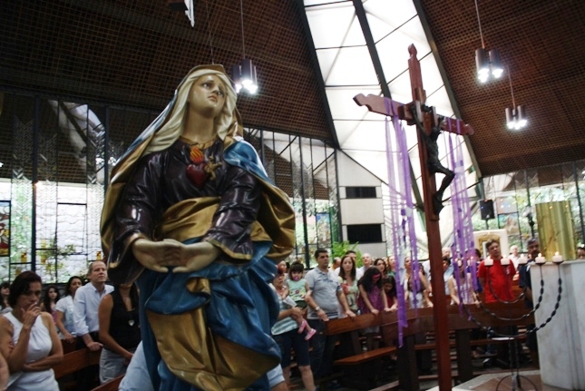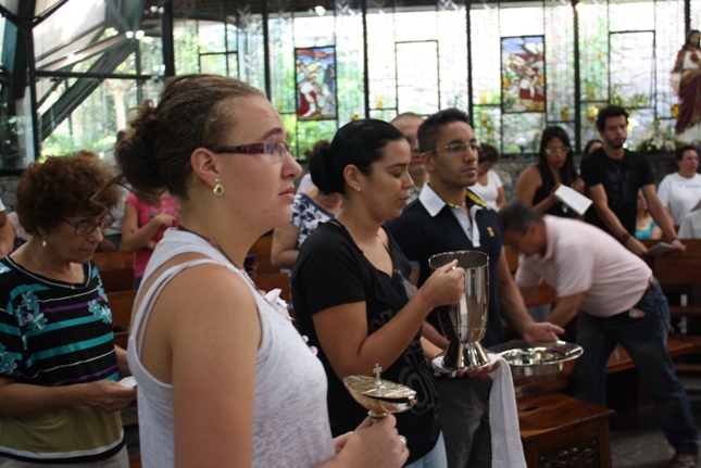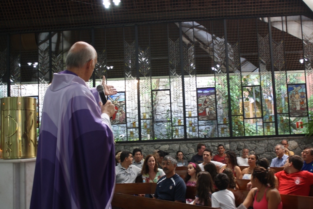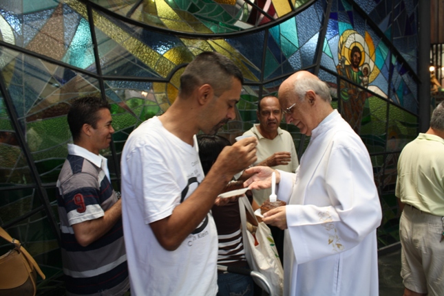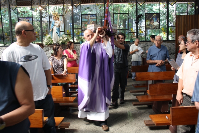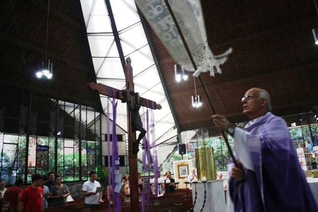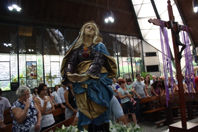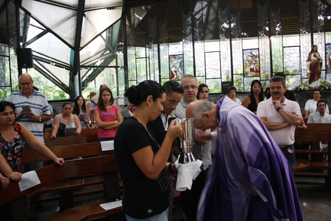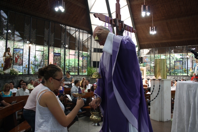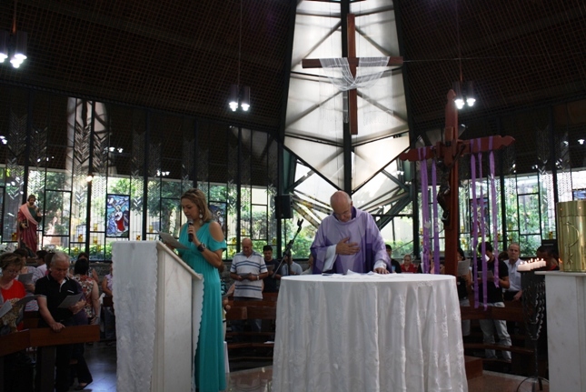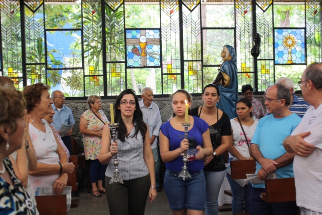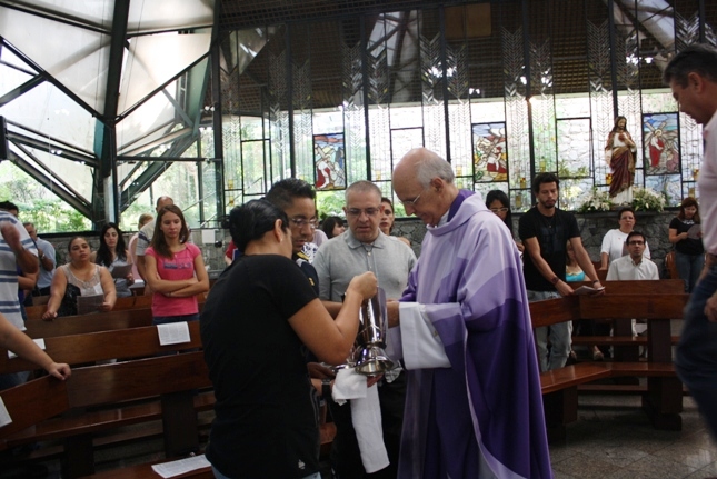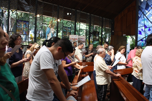 Os jovens carregam a Cruz e participam ativamente das celebrações. É o Ano da Fé e nele toda a preparação para a Jornada Mundial da Juventude. Também nas fotos o destaque para o vitral da Capela da Universidade São Judas Tadeu, que traz a Transfiguração.