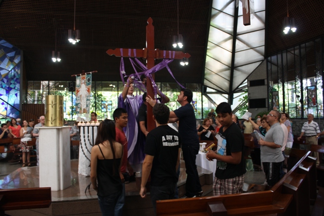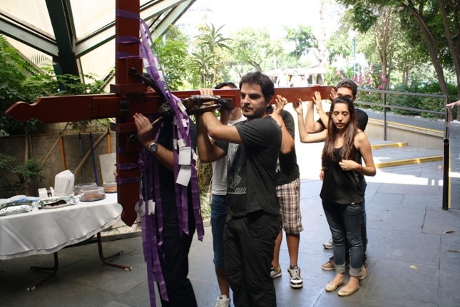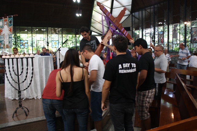 Os jovens carregam a Cruz e participam ativamente