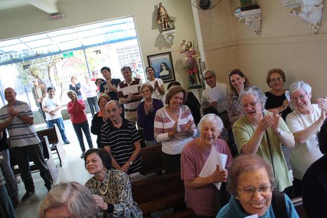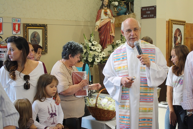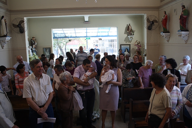 A igreja estava repleta de amigos e familiares para acolher nossas irmãnzinha mais novas.