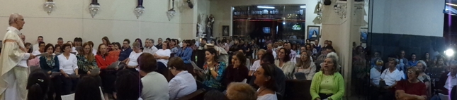 Abaixo quatro fotos, singelamente representativas. Na Paróquia São Miguel Arcanjo com a comunidade e um pedacinho da sacristia, onde estão muitas lembranças do Pe Julio e, destacadamente, uma foto da dona Wilma, sempre com uma flor. Já na Capela da Universidade São Judas, também repleta, a homenagem com flores.