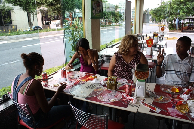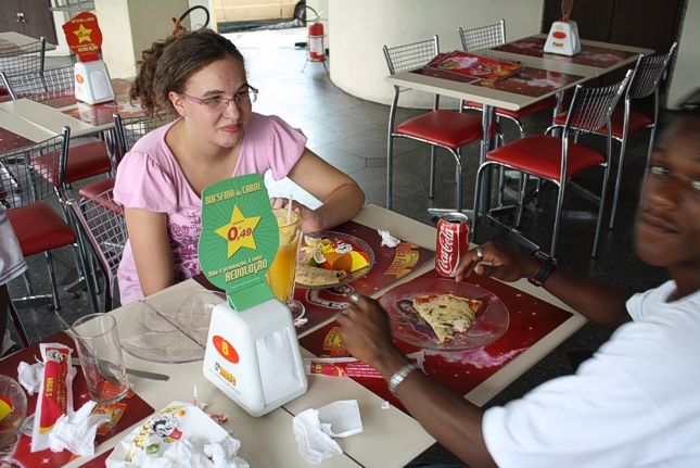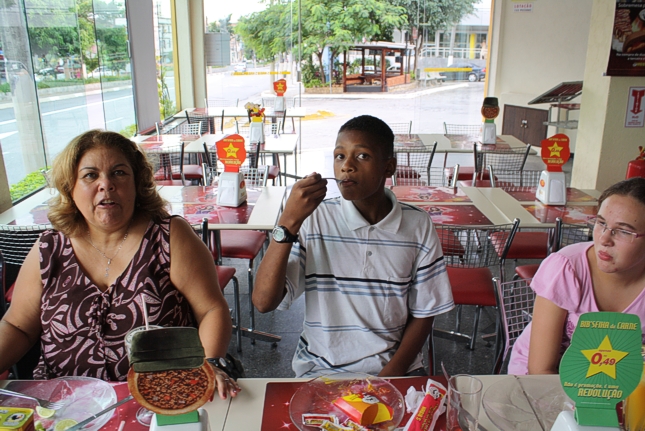 Hoje aqui no Pátio do Colégio onde a gente se reuniu vi um colega meu de rua, então o chamei e perguntei como ele estava, ele disse que estava alegre que tava na rua de novo e isso me deixou muito triste, de saber que estou em um lugar bom e meu colega que viveu na rua comigo no passado não estar em um lugar que receba carinho e amor como eu.