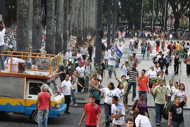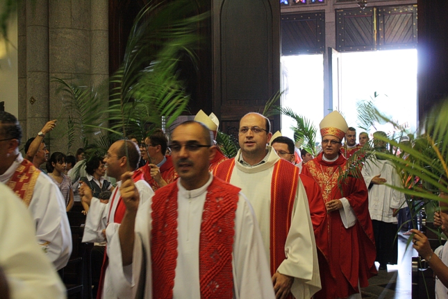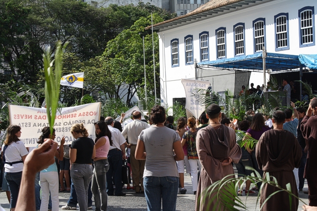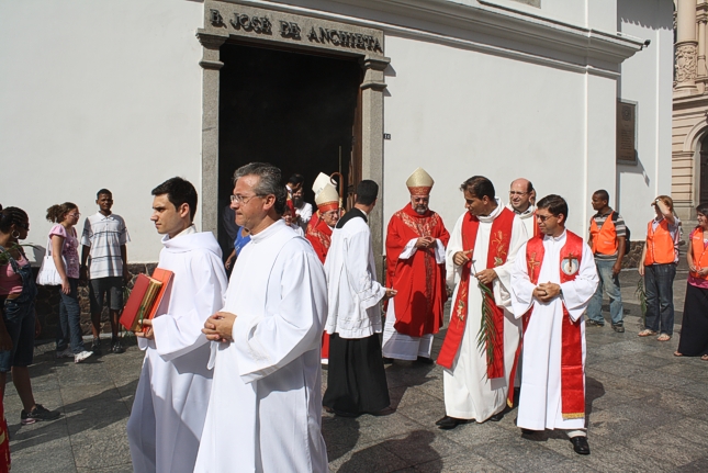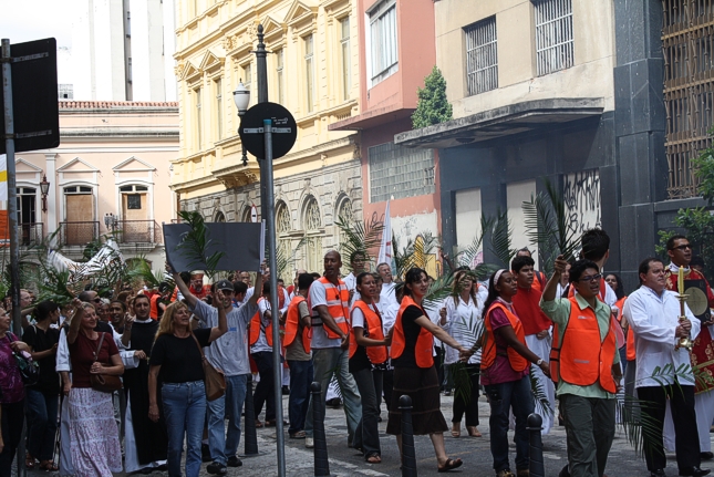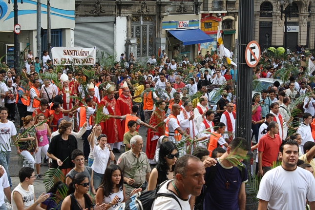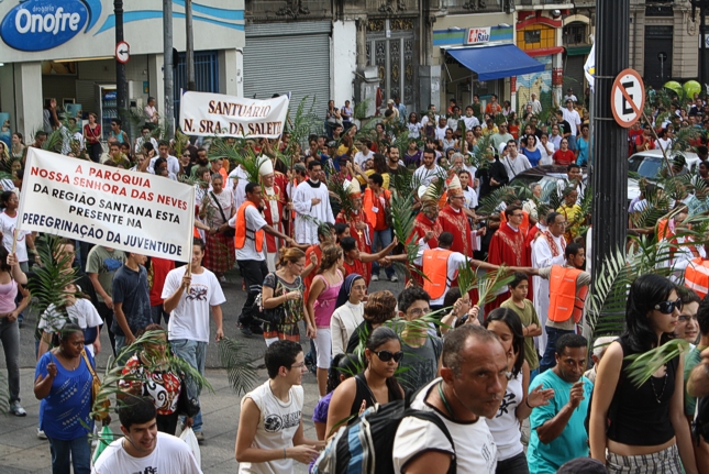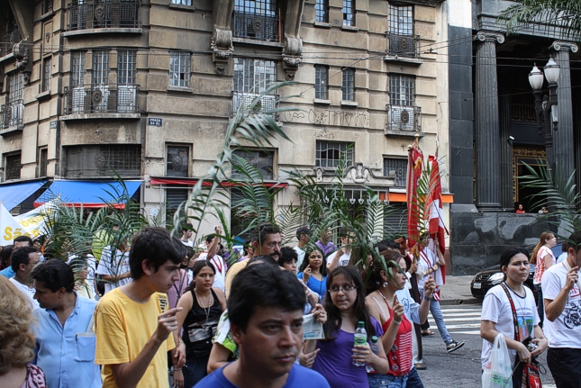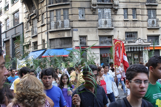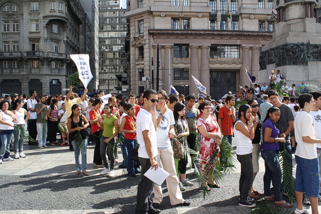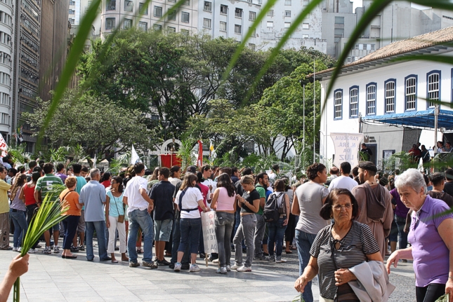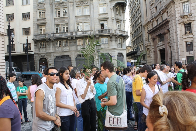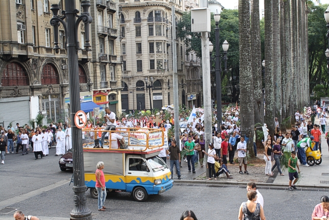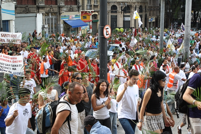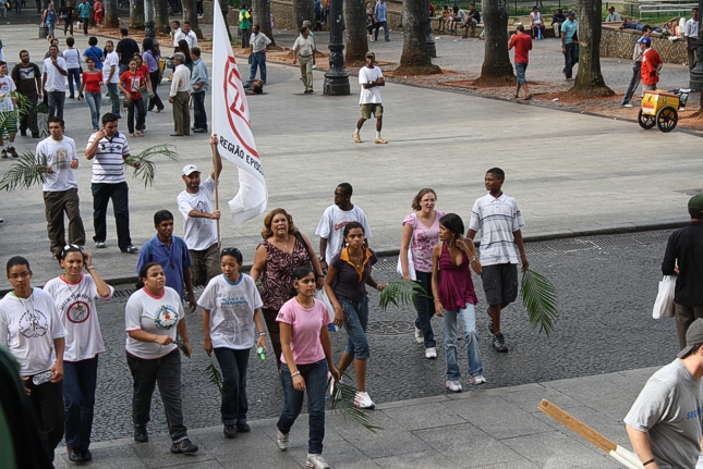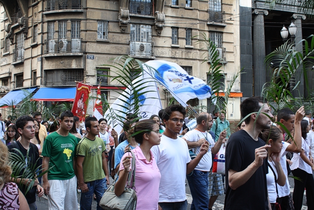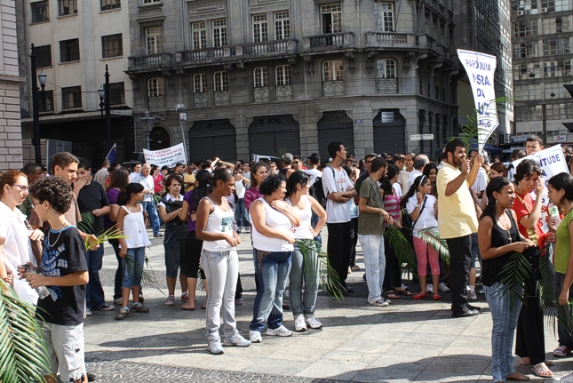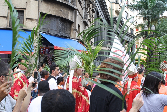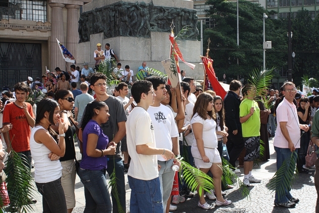 Após a missa das 10h alguns crismandos se reuniram neste domingo de Ramos no Pátio do Colégio, com muitos adultos também, todos com muita fé foram em procissão para a catedral da Sé, onde houve a peregrinação dos jovens com a participação do Dom Odilo, Dom Pedro Luiz, da nossa Região, Dom Tarcísio, o bispo que acompanha a juventude na Arquidiocese de São Paulo, entre vários outros.