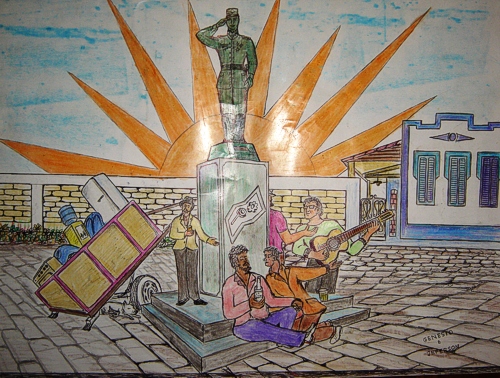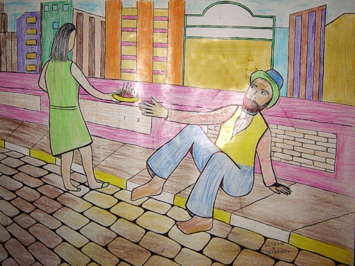 Durante a Celebração um morador em situação de rua apresentou alguns cartazes desenhados por ele, mostrando vários aspectos do povo que vive na rua: trabalhando com suas carrocinhas recolhendo material reciclável; mostrando também as dificuldades para quem vive nessa situação. Tudo de maneira absolutamente artística e criativa.