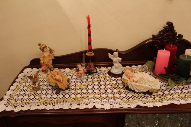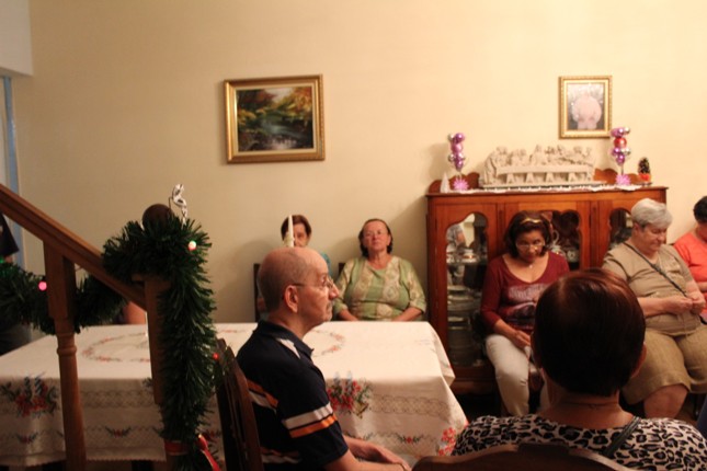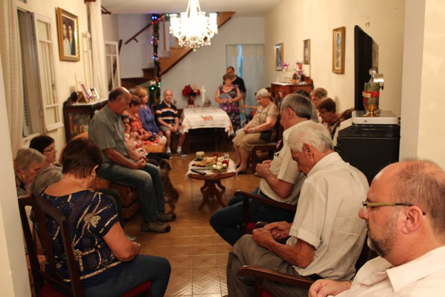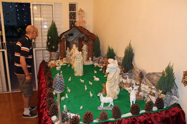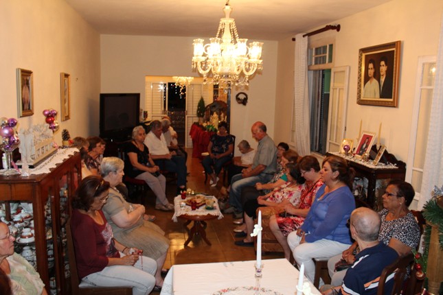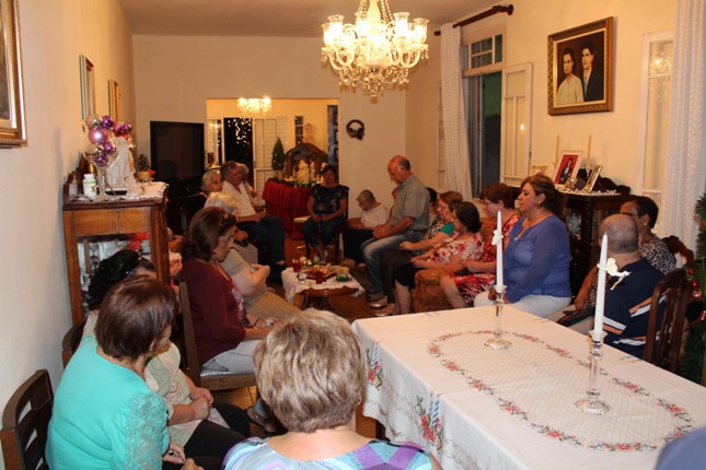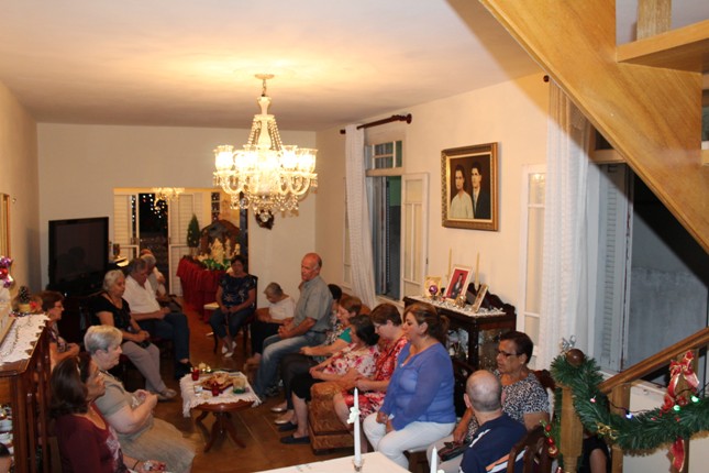 O período do Advento é propício. Ali todos aguardam. Uns já preparam com o presépio fazendo memória da cena da chegada. É o caso da família Fabretti. Com delicadeza montaram o presépio, ladeado de bonitos símbolos da fé. Também convidaram algumas pessoas da Comunidade São Miguel Arcanjo, para na sua residência rezarem o Terço, nesta quarta-feira 17/12/14, oferecendo rosas em forma de oração à Nossa Senhora. Vejam as fotos desse belíssimo momento.