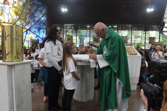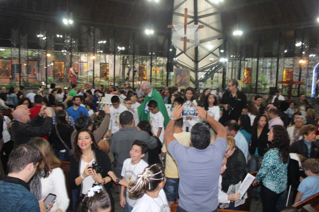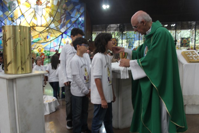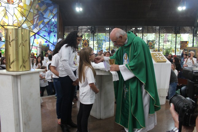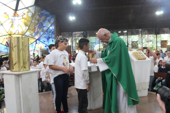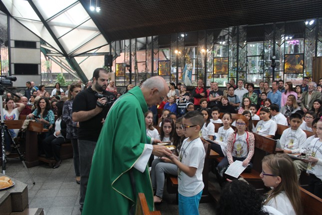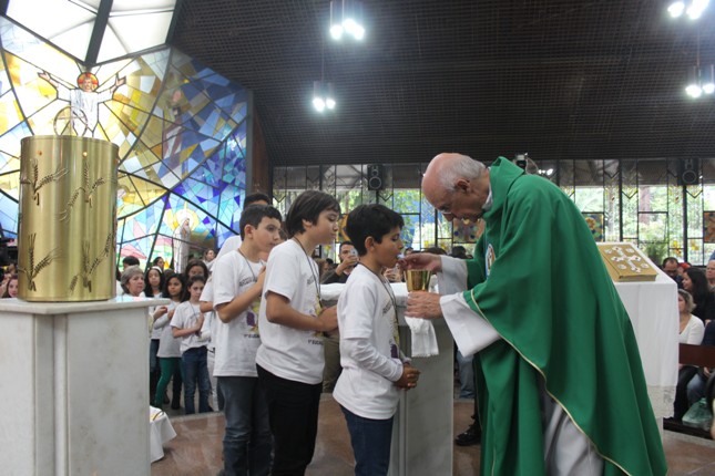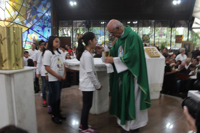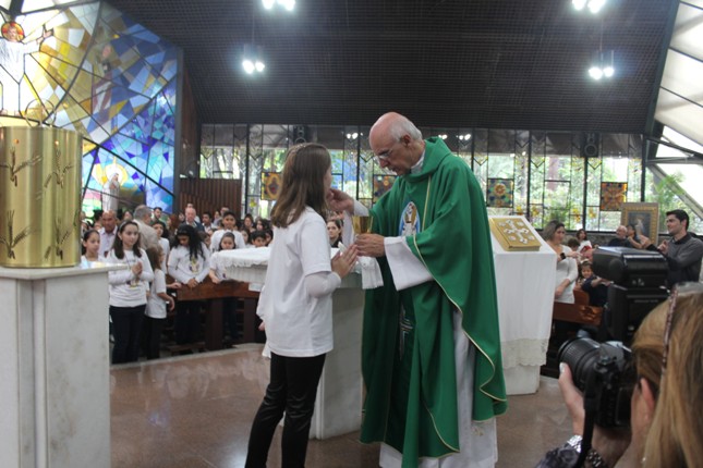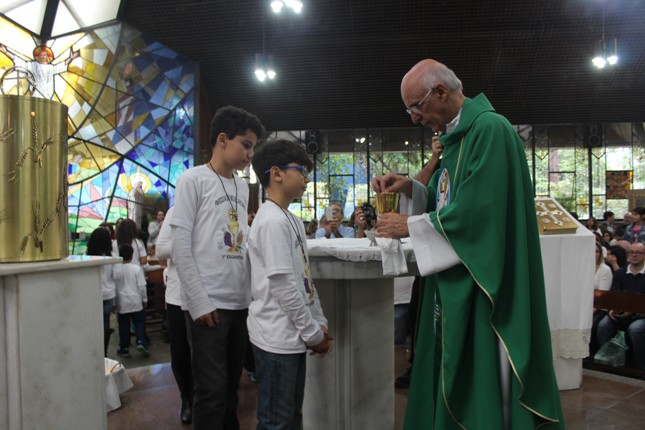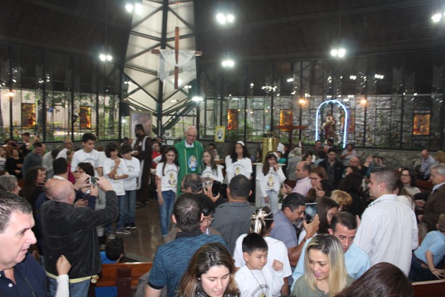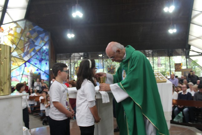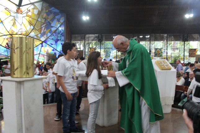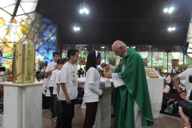 O brilho nos olhos dos nossos jovens foi marcante. A celebração eucarística na capela universitária São Judas Tadeu foi marcante para as meninas e meninos, familiares e amigos. Receberam Jesus na Eucaristia, na caminhada da fé.
