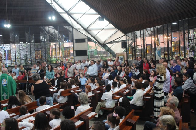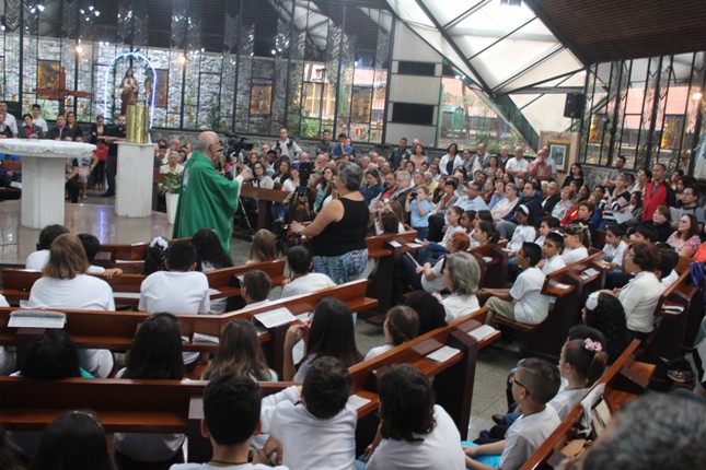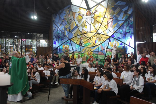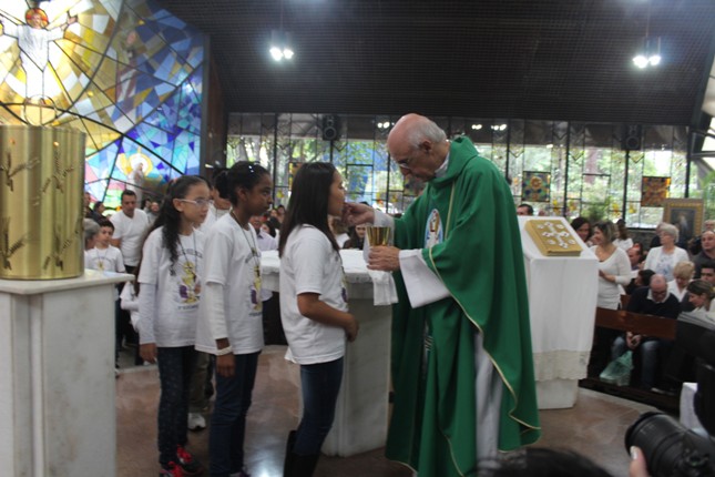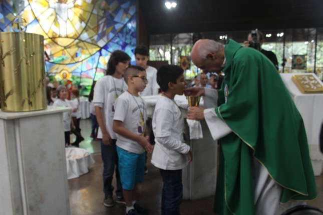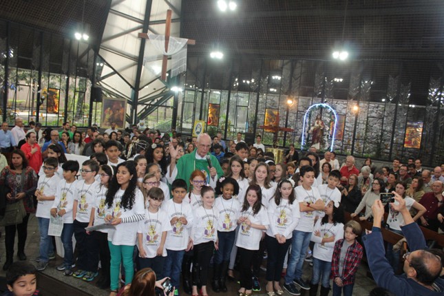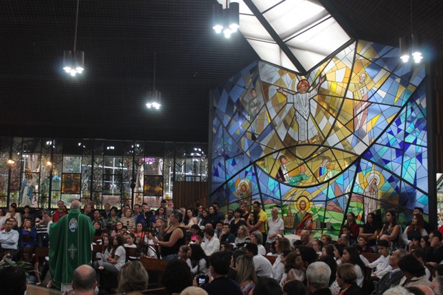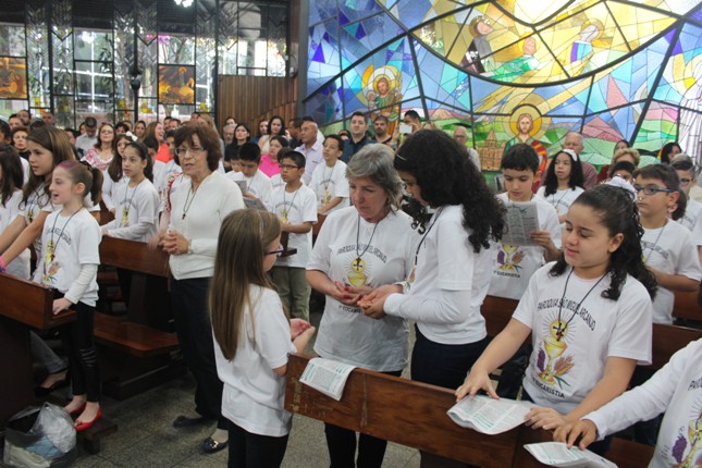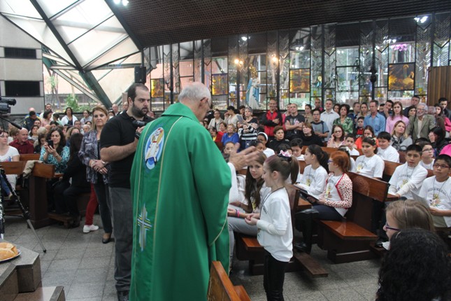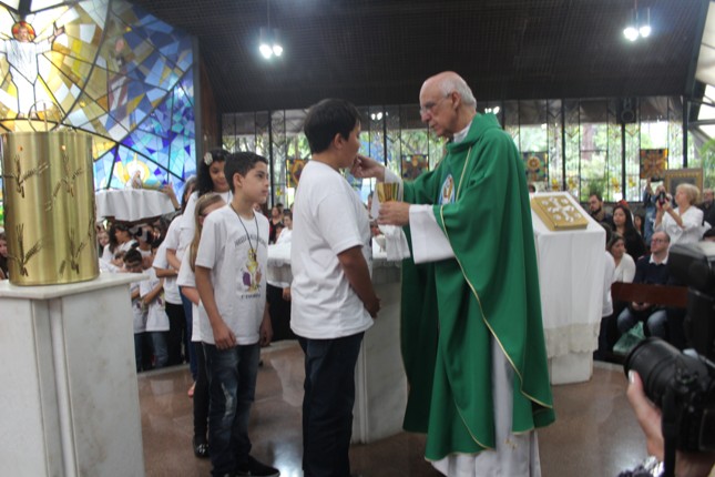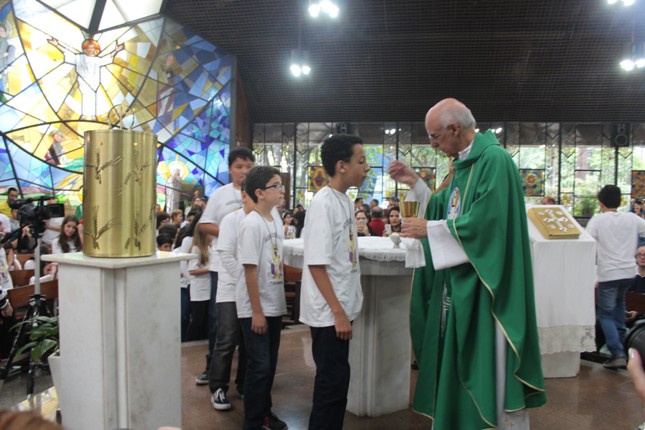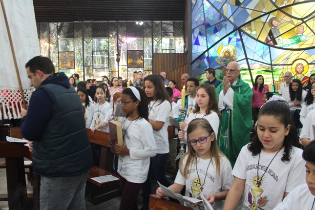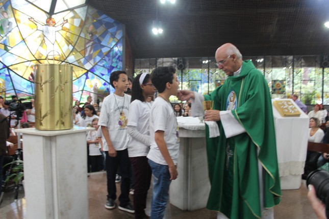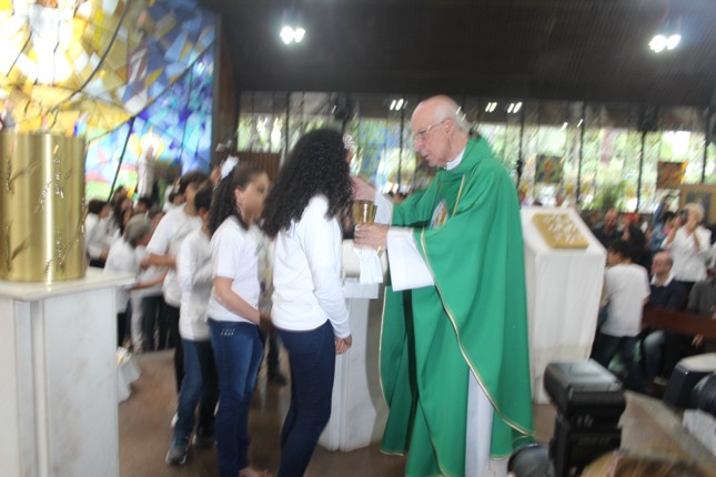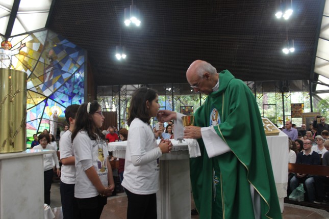 O brilho nos olhos dos nossos jovens foi marcante. A celebração eucarística na capela universitária São Judas Tadeu foi marcante para as meninas e meninos, familiares e amigos. Receberam Jesus na Eucaristia, na caminhada da fé.