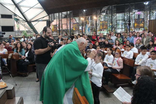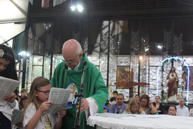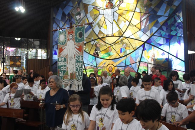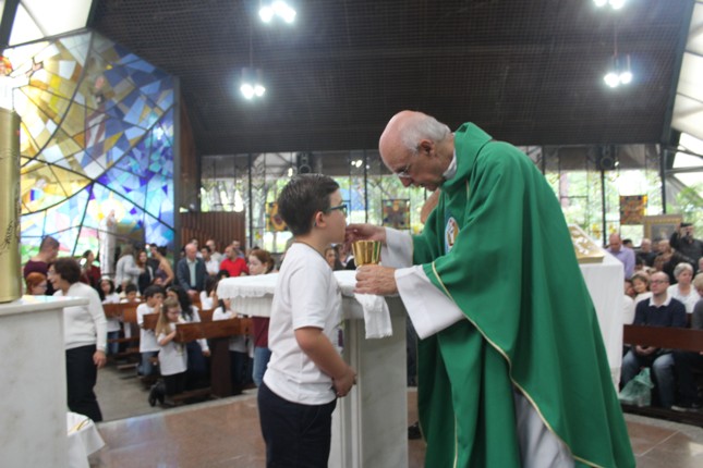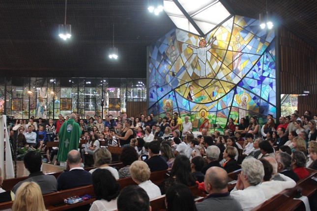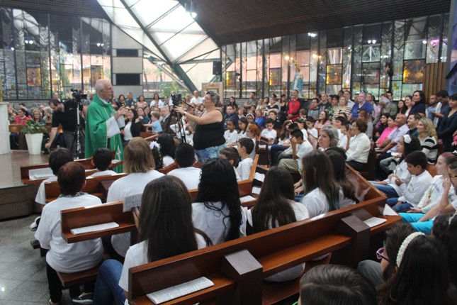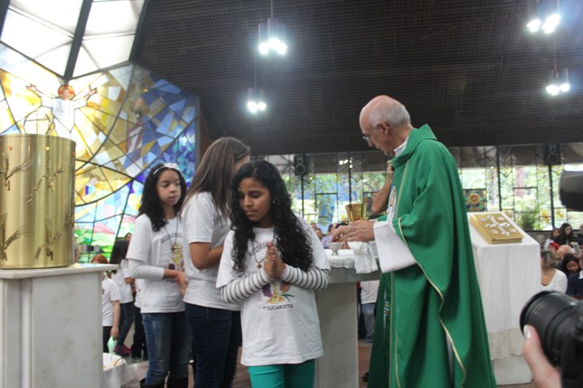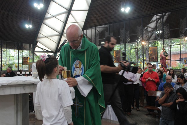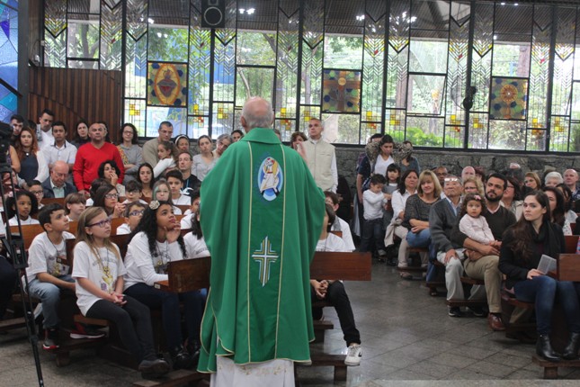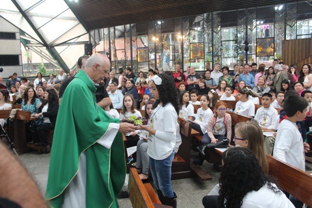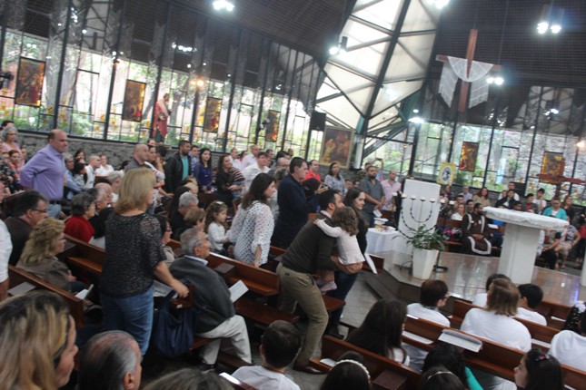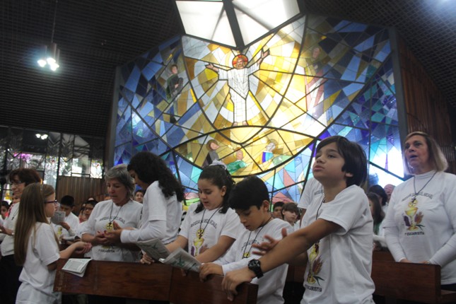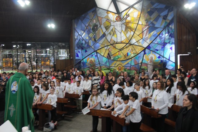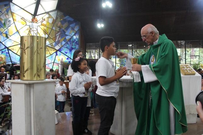 O brilho nos olhos dos nossos jovens foi marcante. A celebração eucarística na capela universitária São Judas Tadeu foi marcante para as meninas e meninos, familiares e amigos. Receberam Jesus na Eucaristia, na caminhada da fé.