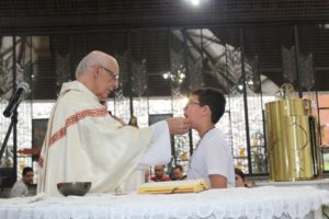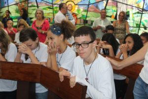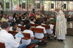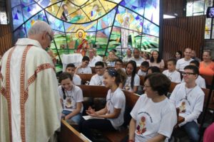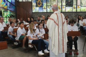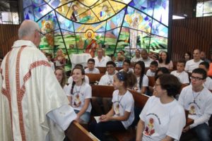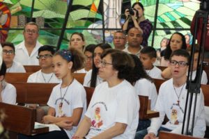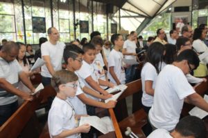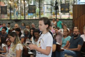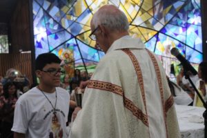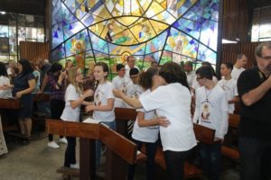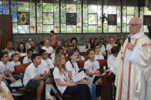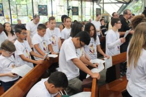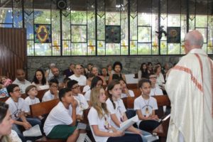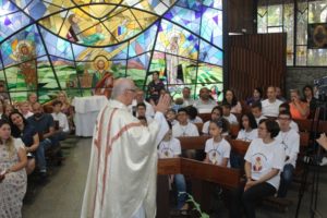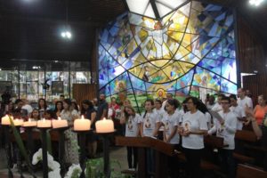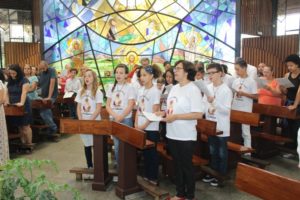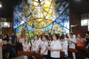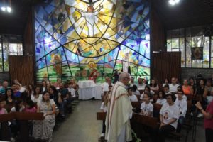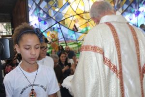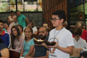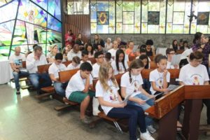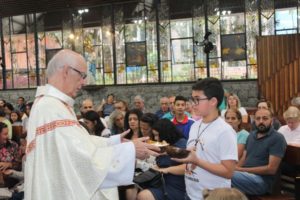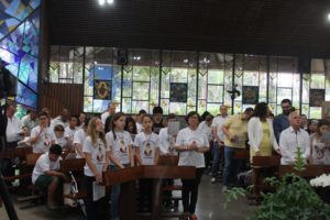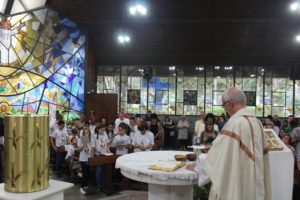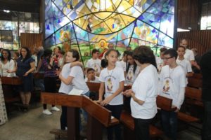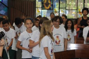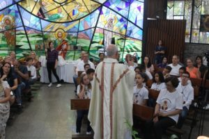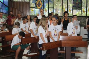 Mais um grupo de jovens recebe a Primeira Eucaristia na Comunidade São Miguel Arcanjo no domingo, 05/11/17, na missa das 10h na Capela universitária São Judas Tadeu, celebração da Solenidade de Todos os Santos.
