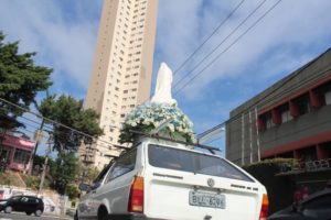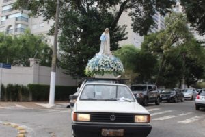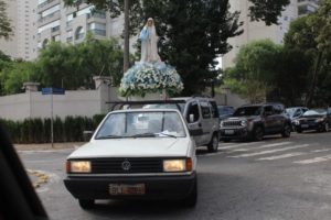 Procissão de carros com Nossa Senhora