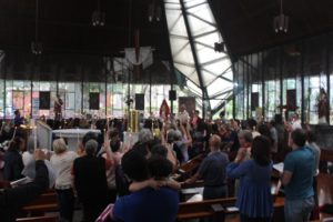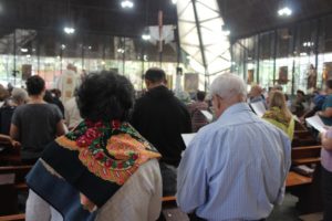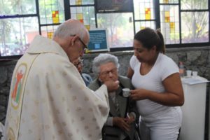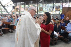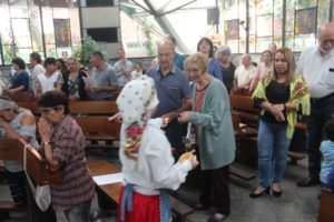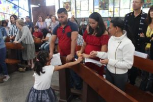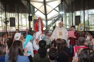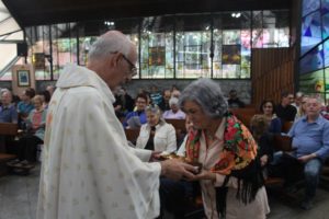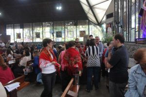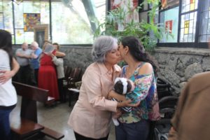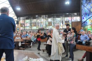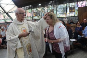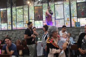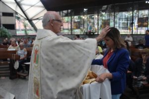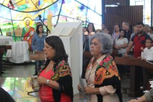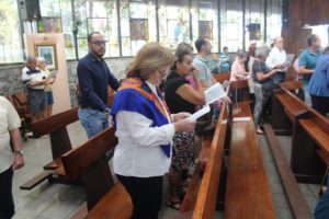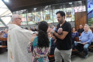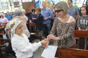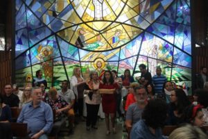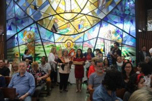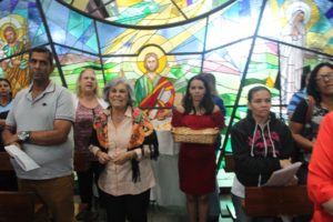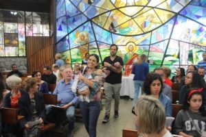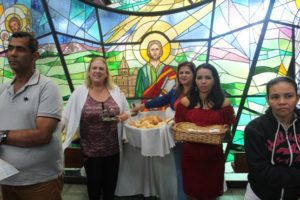 Durante a celebração a beêção especial a uma mãe que espera seu filho e a mais uma que veio trazer seus dois filhos (gêmeos), de poucos meses (netos da Silvia e do Edegar).