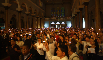 Fieis de várias paróquias e comunidades lotaram a igreja Nossa Senhora de Lourdes, na Água Rasa, na quinta-feira, 18 de março, para a missa de acolhida de D. Edmar Peron, novo bispo da Região Belém. D. Edmar substitui D. Pedro Luiz Stringhini, transferido para a Diocese de Franca.