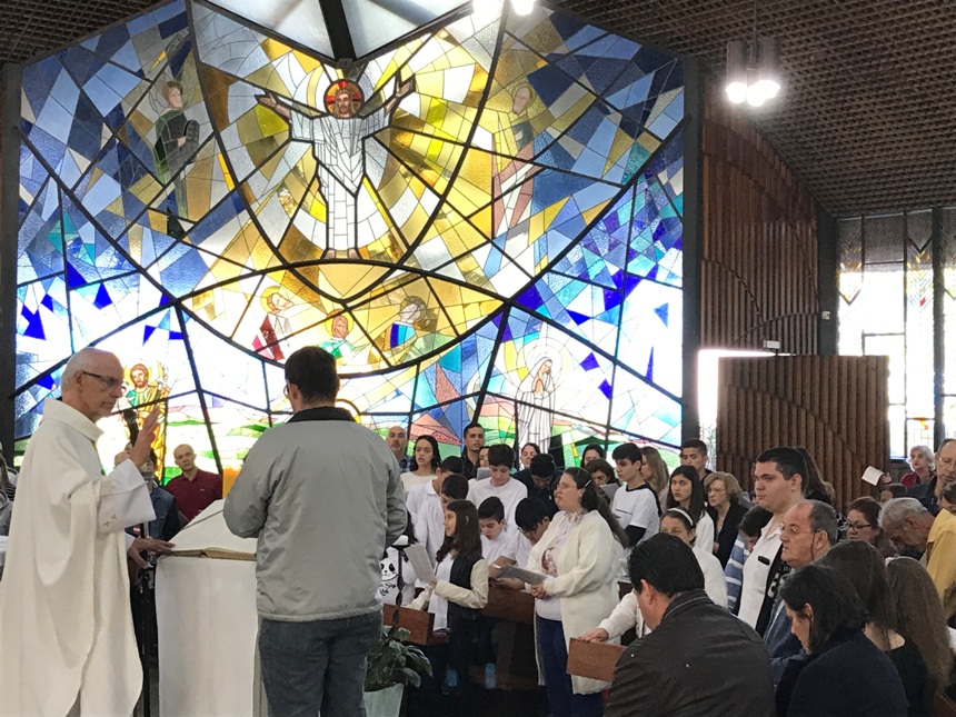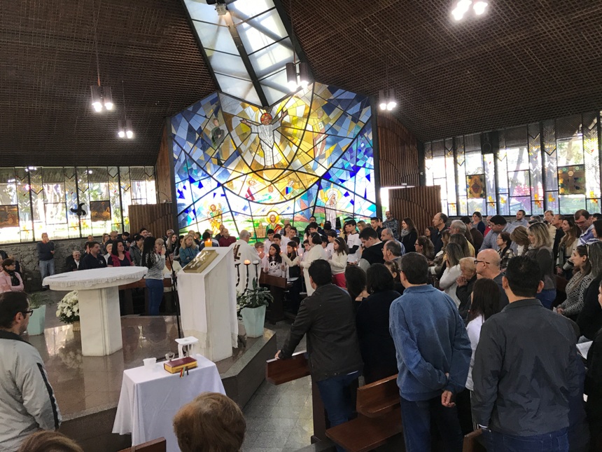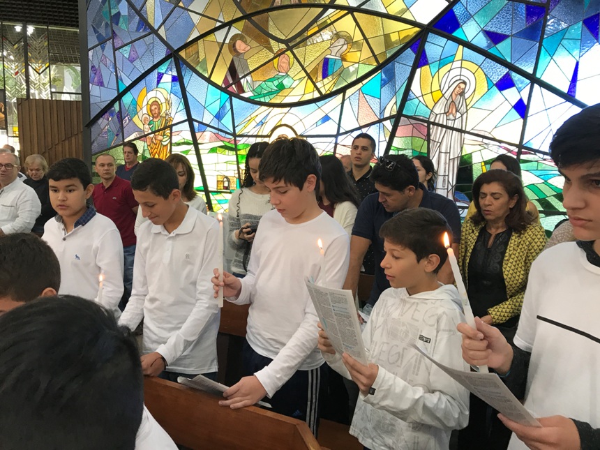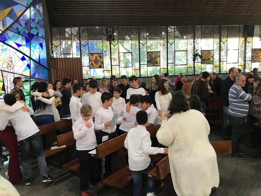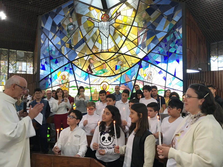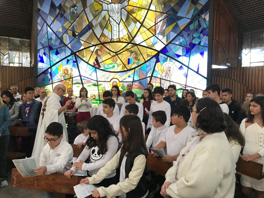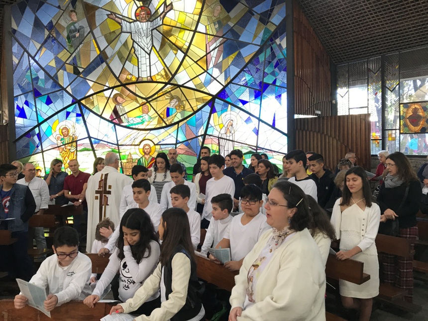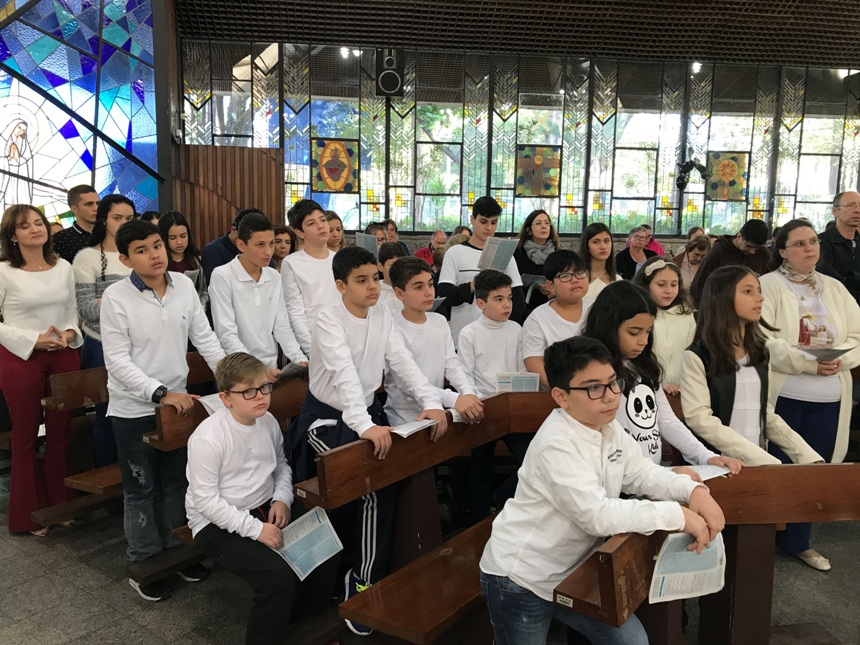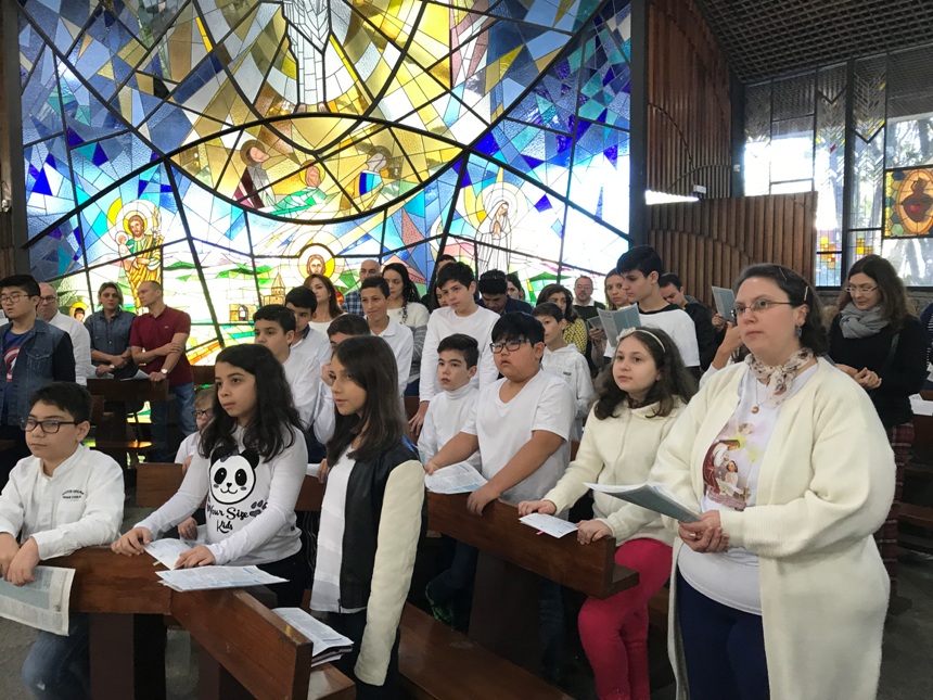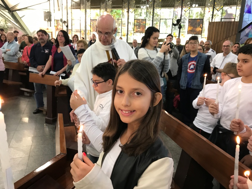 Crianças e adolescentes da Comunidade São Miguel Arcanjo, na preparação para a Primeira Eucaristia, renovaram as promessas do batismo neste domingo, 11/06/17 na missa das 10h, que aconteceu na Capela universitária São Miguel Arcanjo.