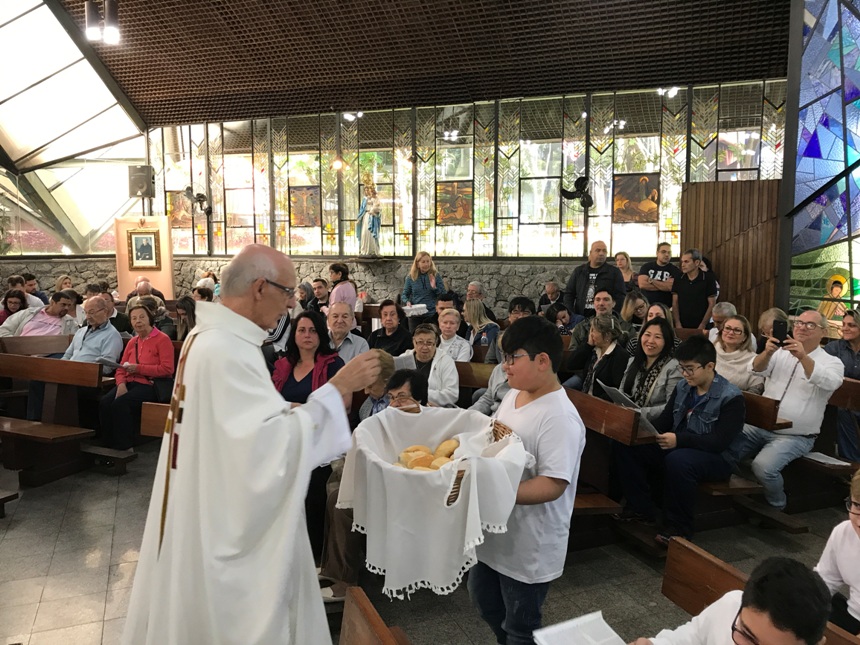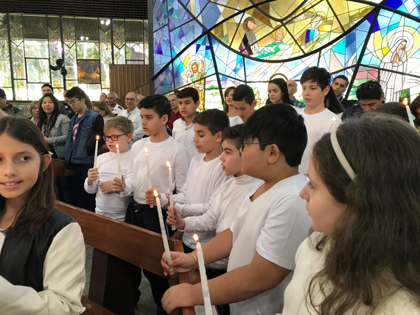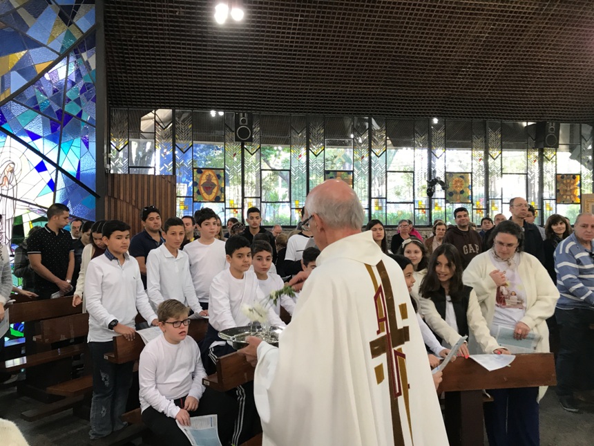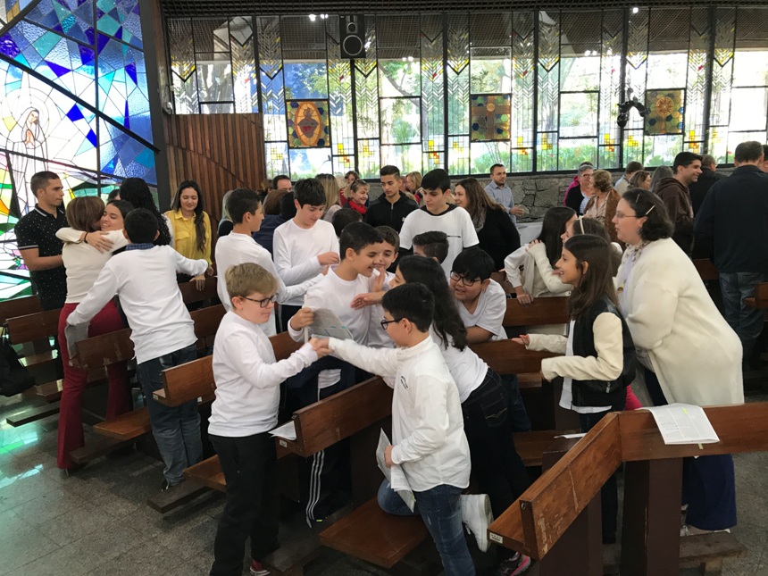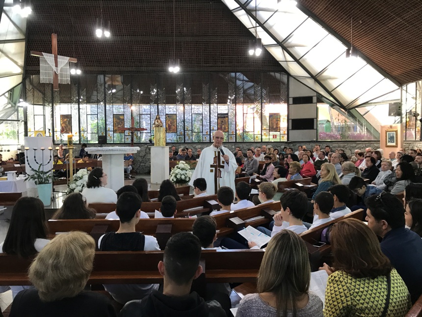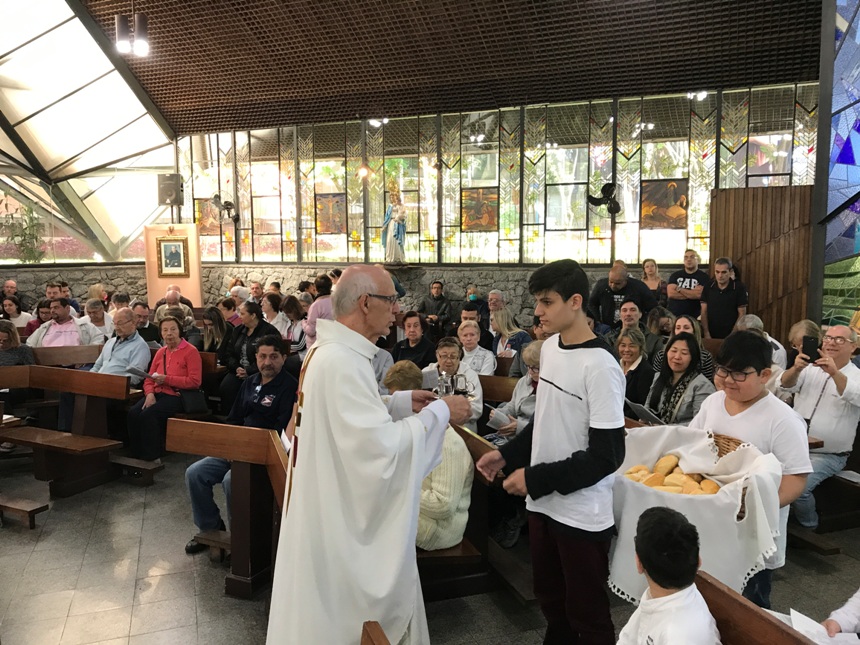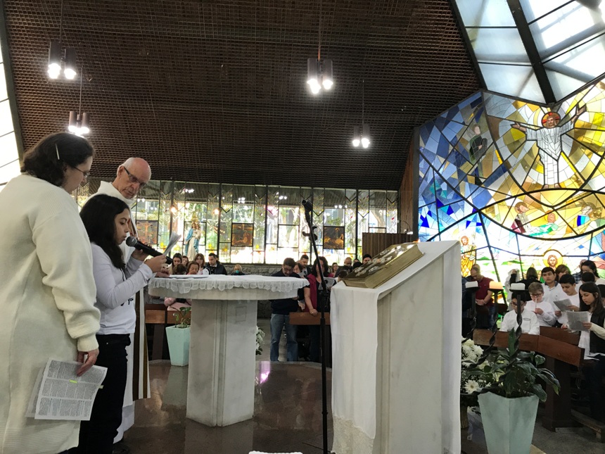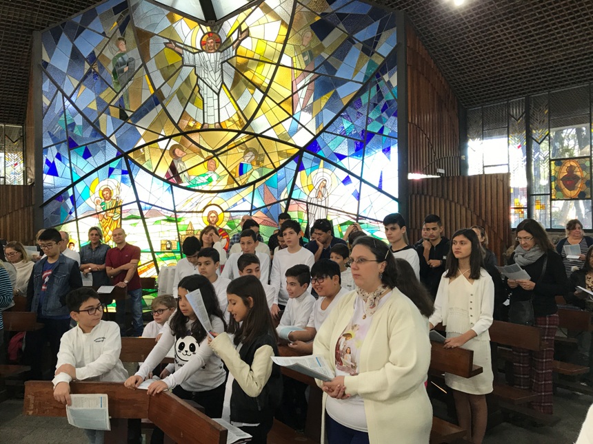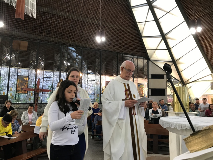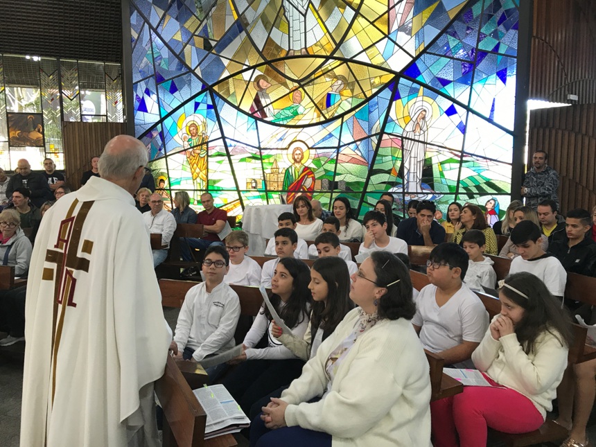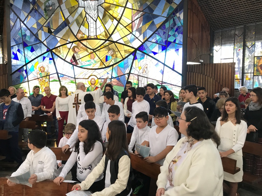 Crianças e adolescentes da Comunidade São Miguel Arcanjo, na preparação para a Primeira Eucaristia, renovaram as promessas do batismo neste domingo, 11/06/17 na missa das 10h, que aconteceu na Capela universitária São Miguel Arcanjo.