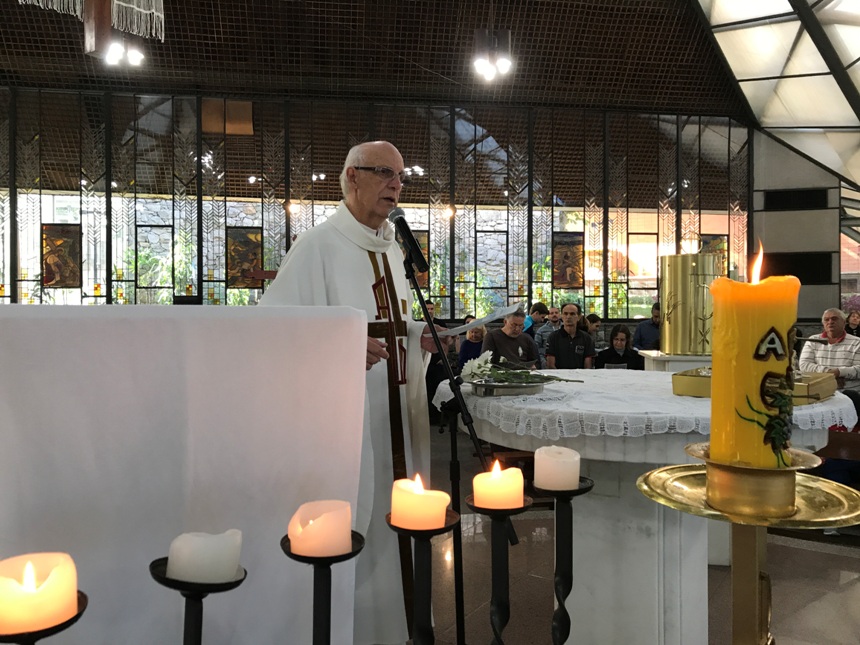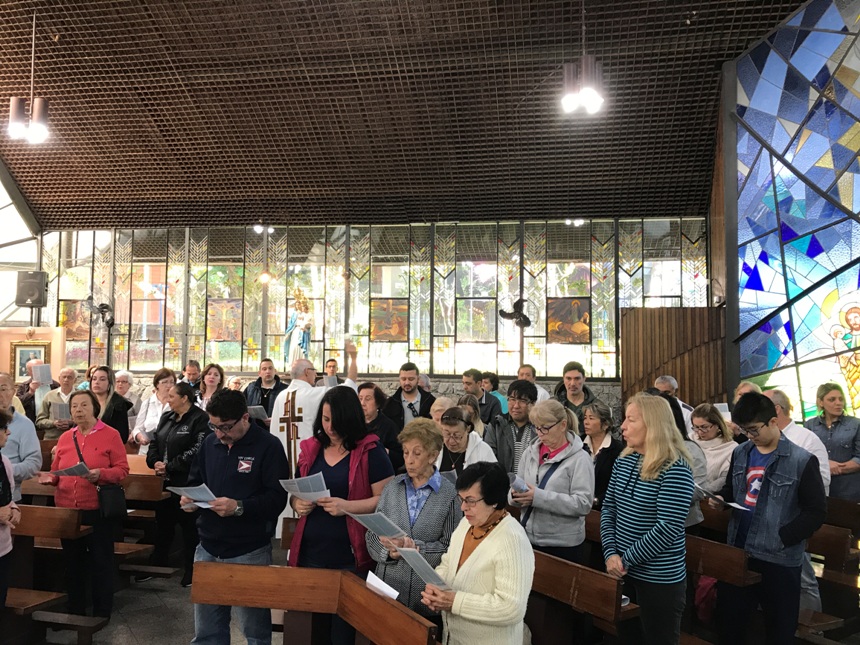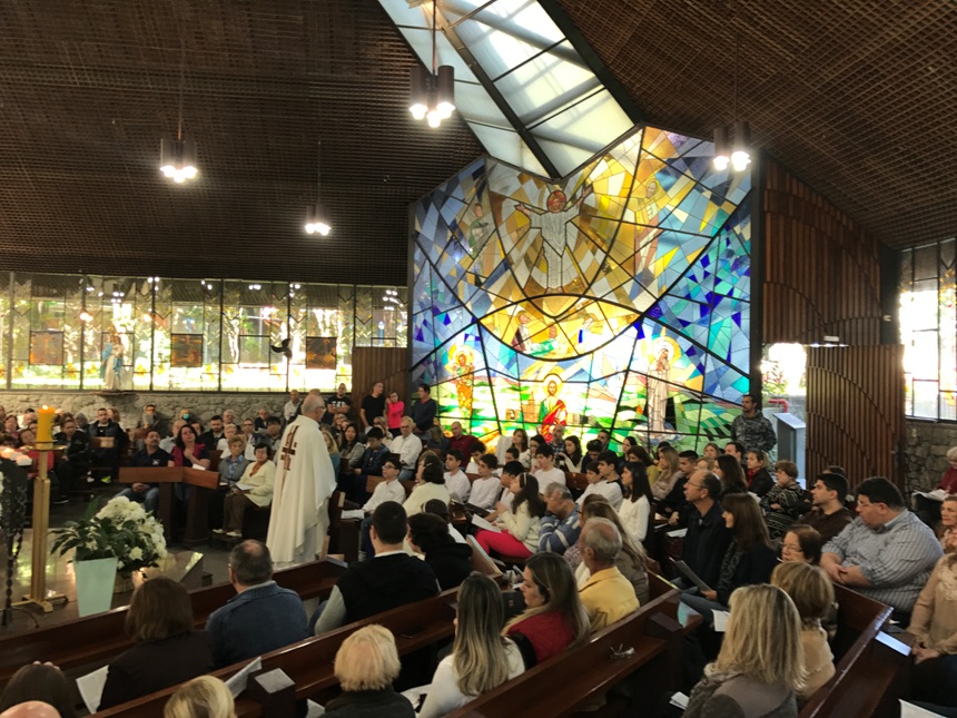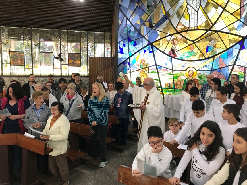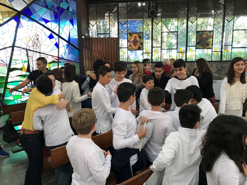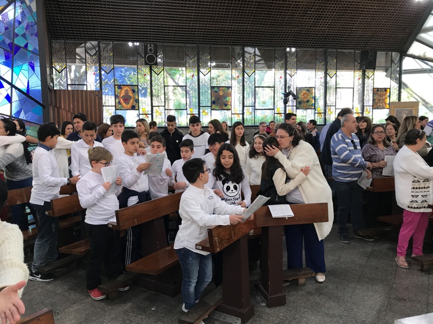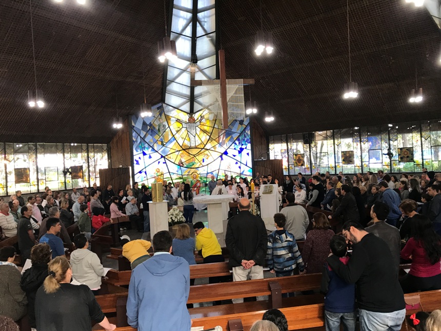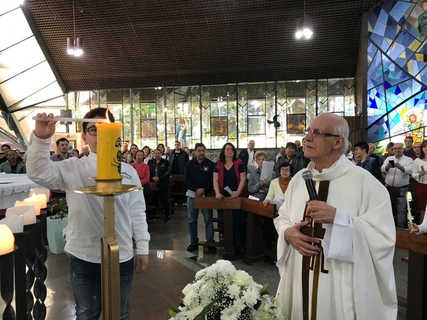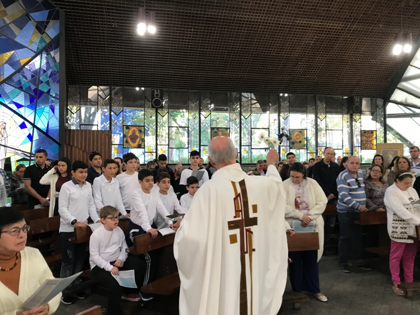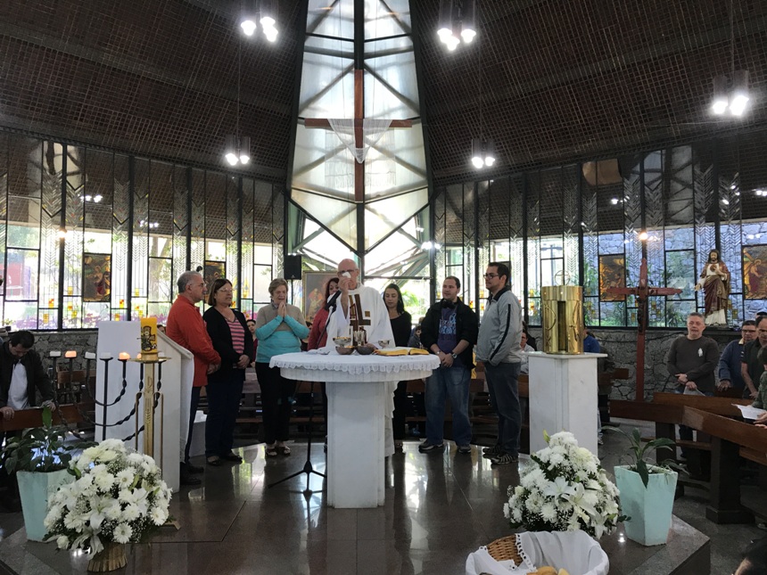 Crianças e adolescentes da Comunidade São Miguel Arcanjo, na preparação para a Primeira Eucaristia, renovaram as promessas do batismo neste domingo, 11/06/17 na missa das 10h, que aconteceu na Capela universitária São Miguel Arcanjo.