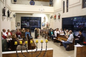 Todos os primeiros sábados do mês, as pessoas interessadas em colaborar com as atividades da liturgia na Paróquia São Miguel Arcanjo, reúnem-se para encontros formativos. Neste último sábado (05/05), a equipe conduzida pelo Padre Júlio encontrou-se para definir o calendário de maio, viabilizar um seminário sobre o Evangelho de Marcos para o mês de julho e começar a discutir sobre as propostas para o próximo Plano Pastoral da