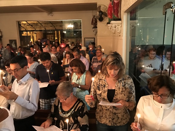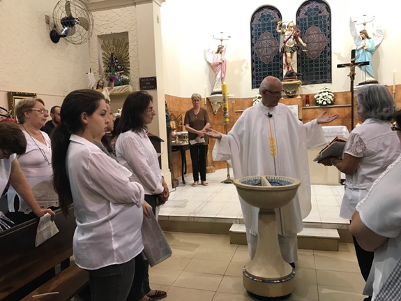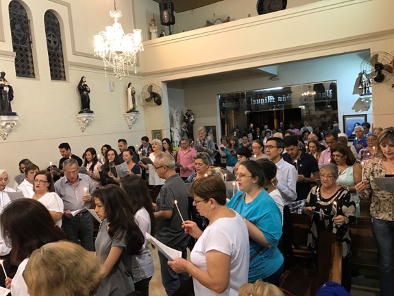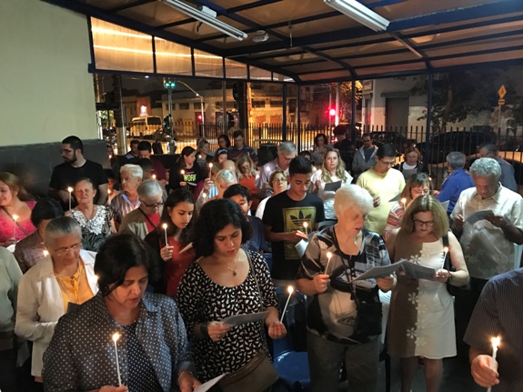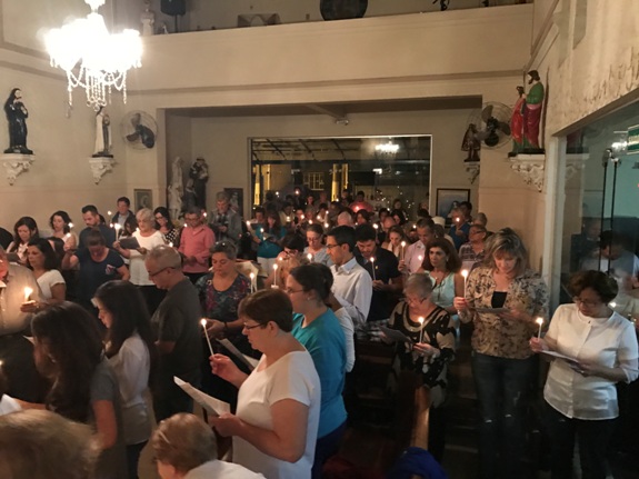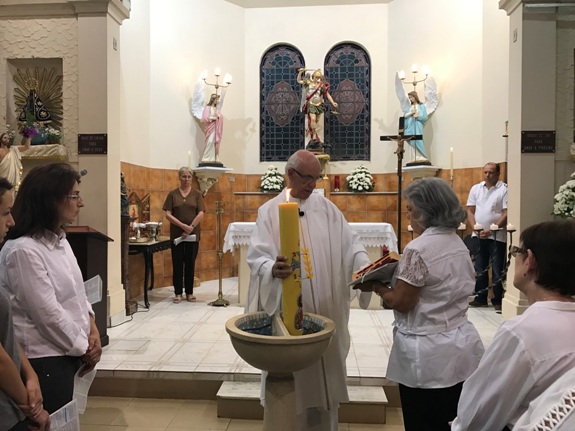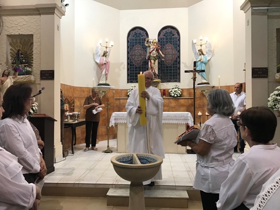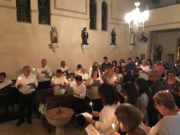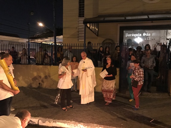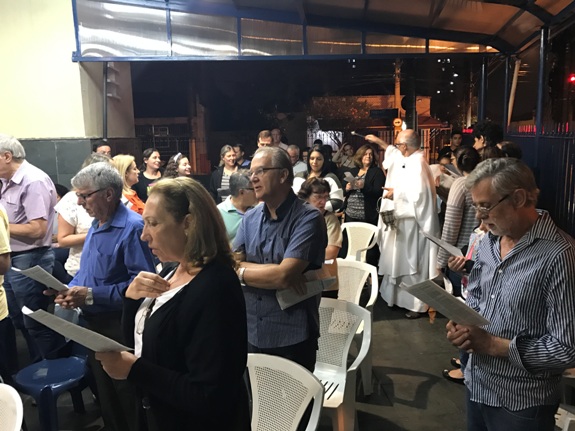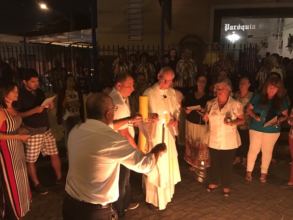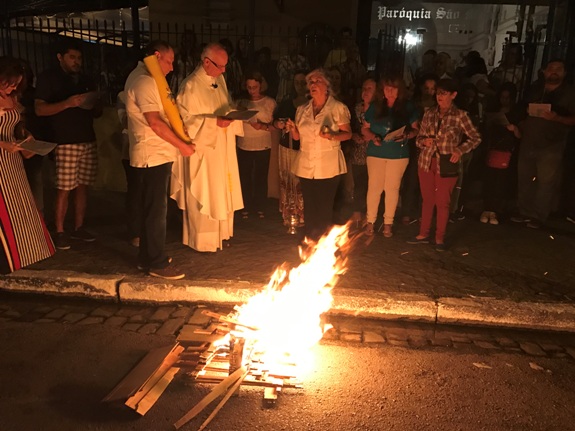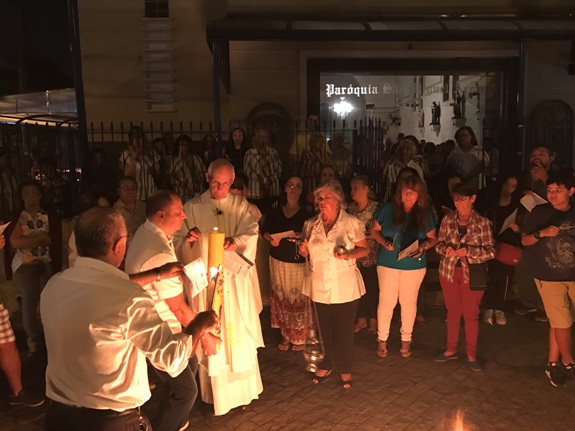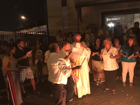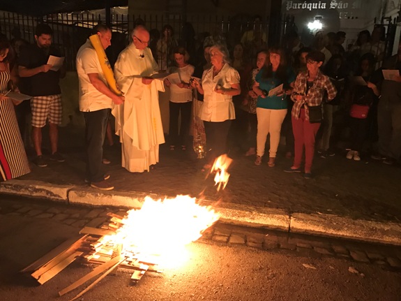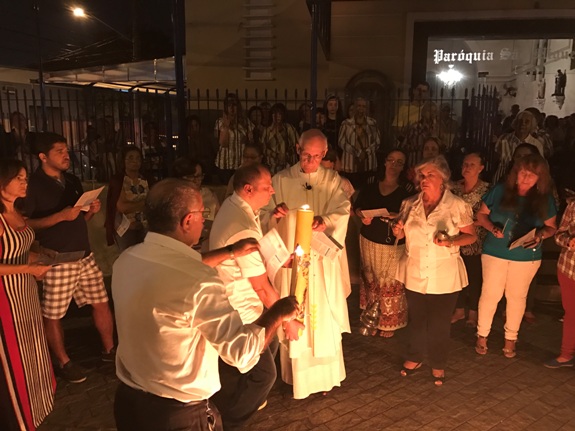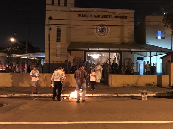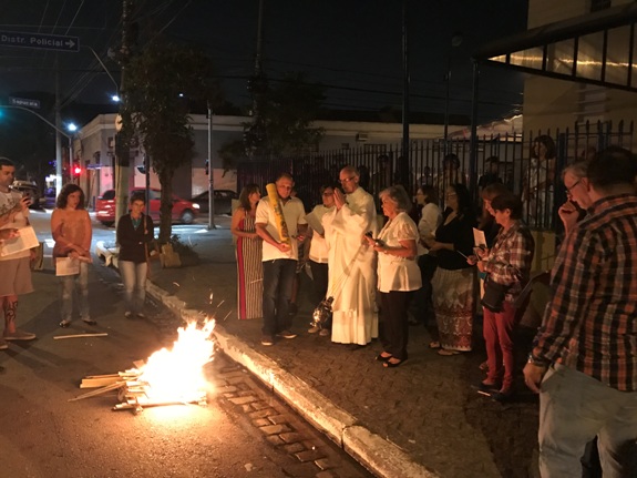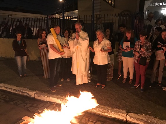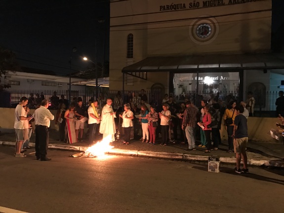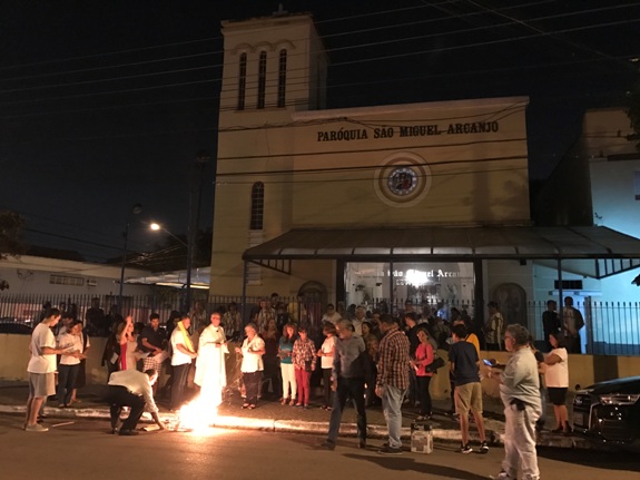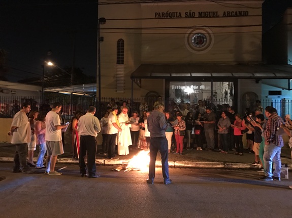 No sábado, 15/04/17 na Igreja São Miguel Arcanjo, a celebração da Vigilia Pascal. A comunidade foi convidada a ir ao local onde foi preparada a fogueira para a bênção do fogo novo, o início da vigília.