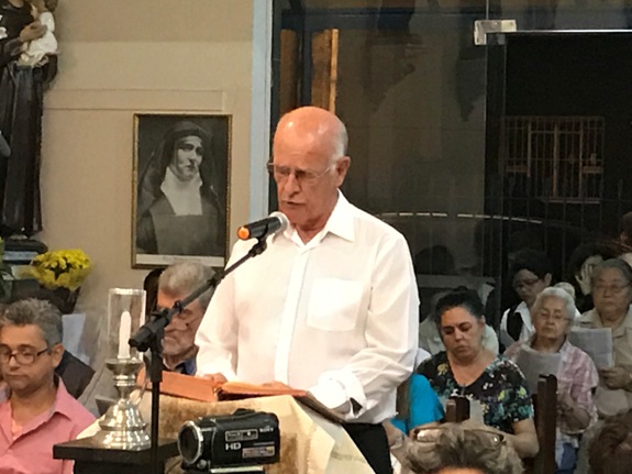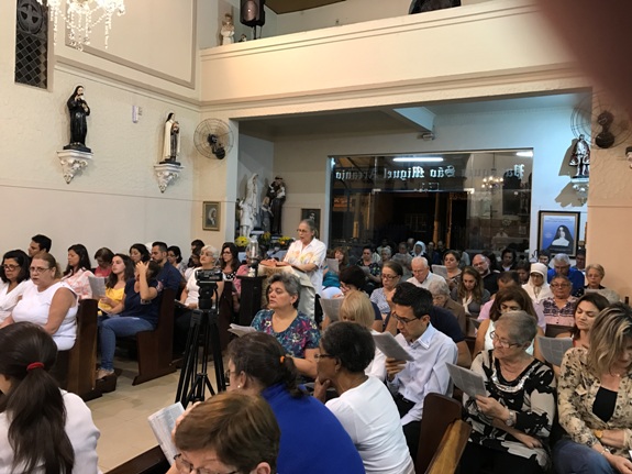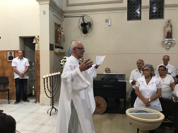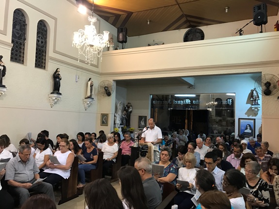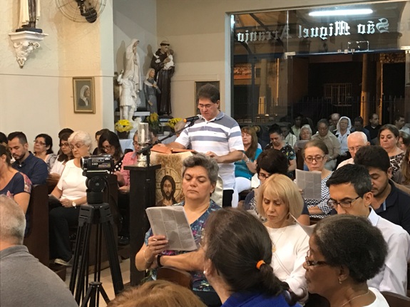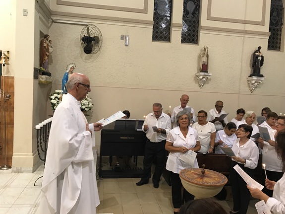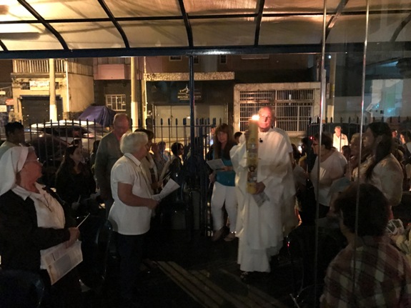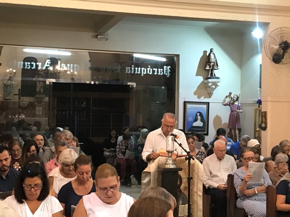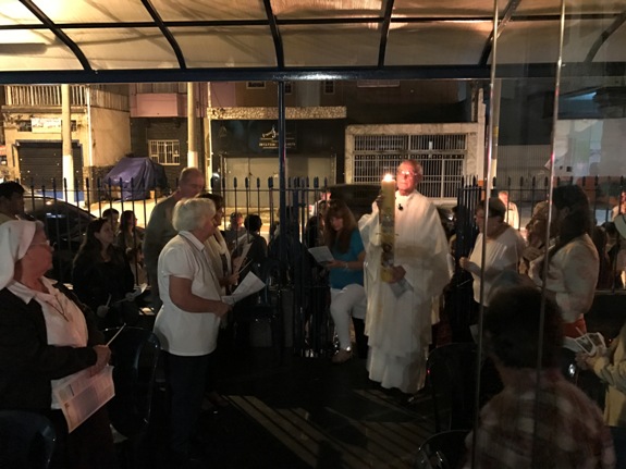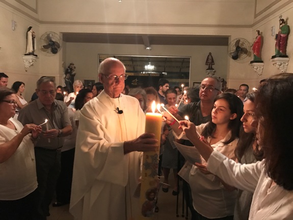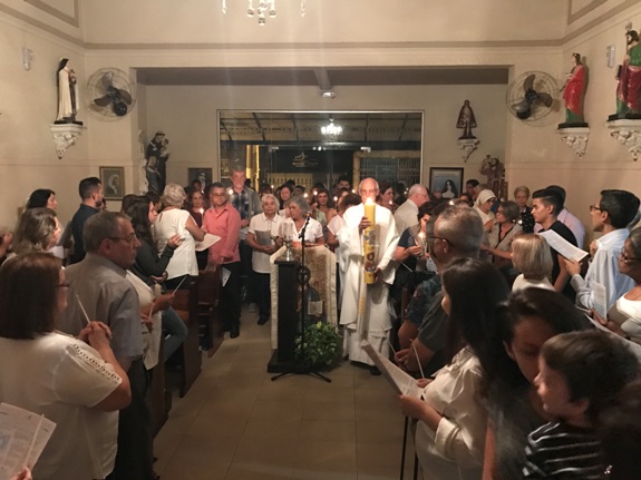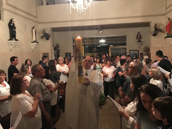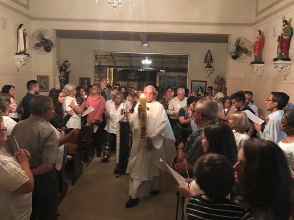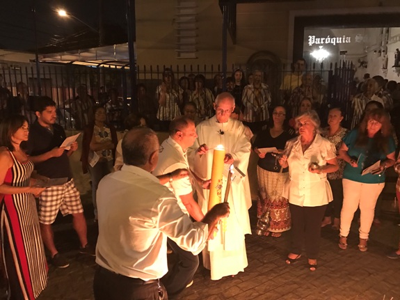 Pe Julio, disse: Meus irmãos e minhas irmãs, nesta noite santa, em que nosso Senhor Jesus Cristo passou da morte à vida, a Igreja convida os seus filhos dispersos por toda a terra a se reunirem em vigília e oração. Se comemorarmos a Páscoa do Senhor ouvindo sua palavra e celebrando seus mistérios, podemos ter a firme esperança de participar do seu triunfo sobre a morte e de sua vida em Deus.
