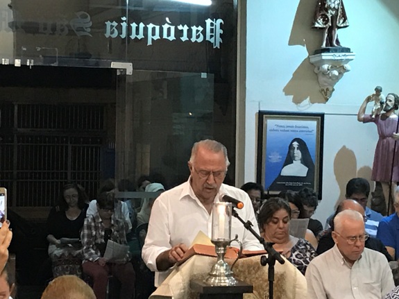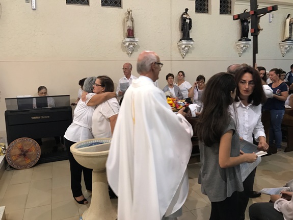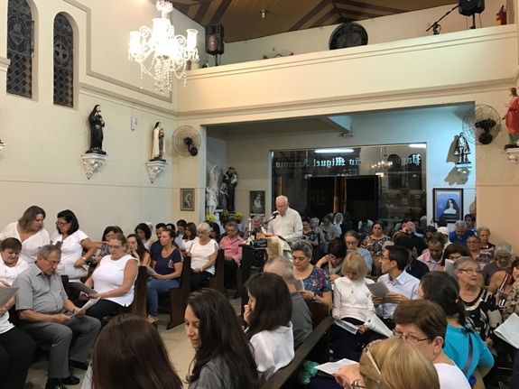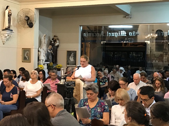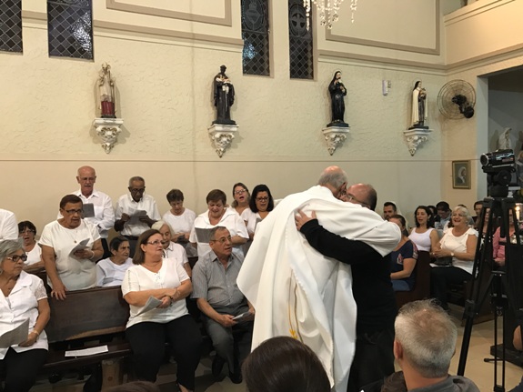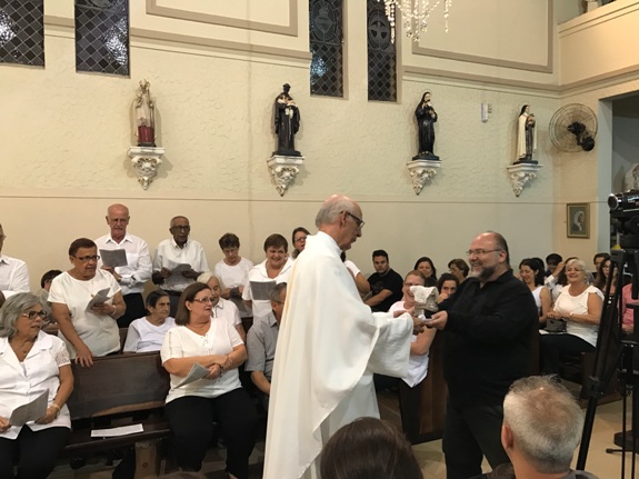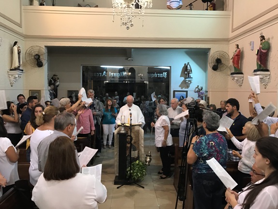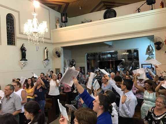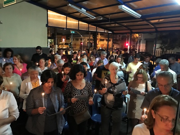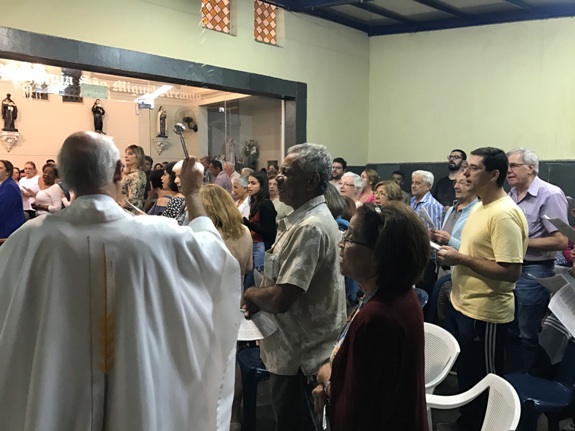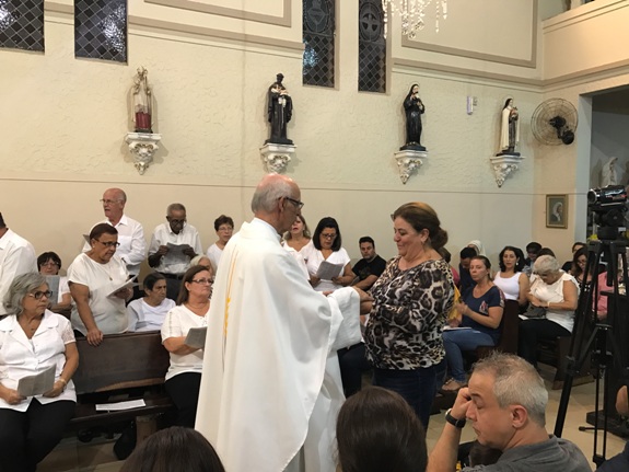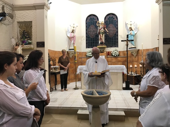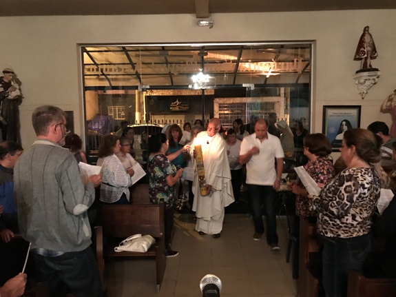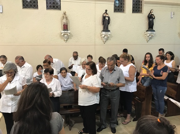 Pe Julio, disse: Meus irmãos e minhas irmãs, nesta noite santa, em que nosso Senhor Jesus Cristo passou da morte à vida, a Igreja convida os seus filhos dispersos por toda a terra a se reunirem em vigília e oração. Se comemorarmos a Páscoa do Senhor ouvindo sua palavra e celebrando seus mistérios, podemos ter a firme esperança de participar do seu triunfo sobre a morte e de sua vida em Deus.