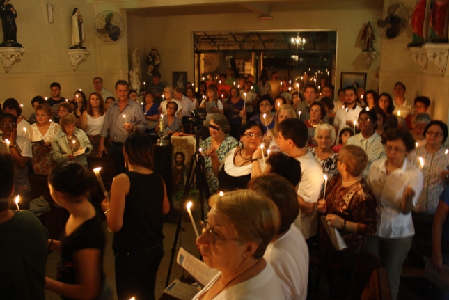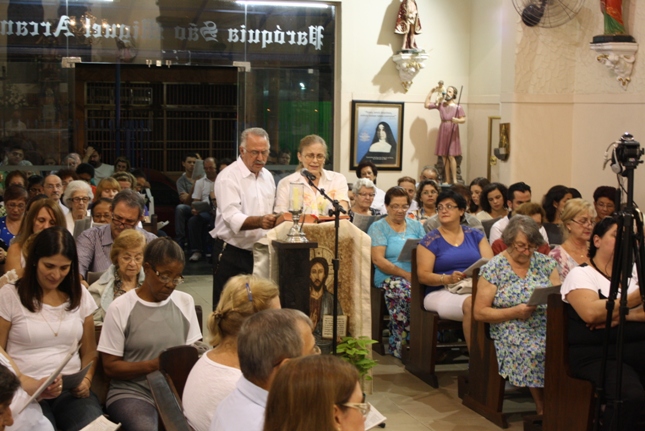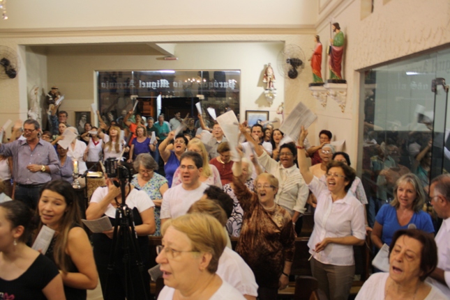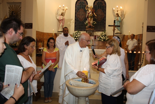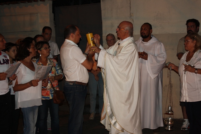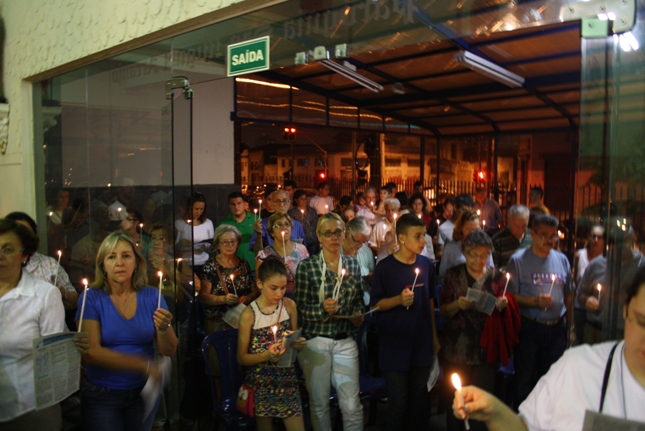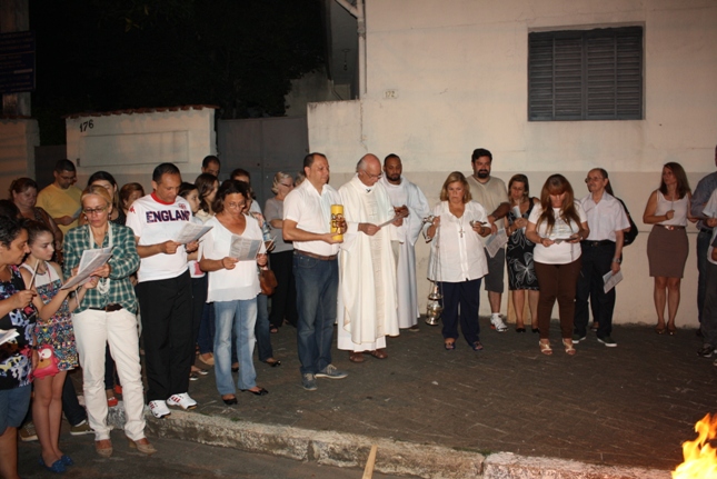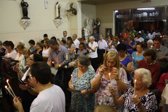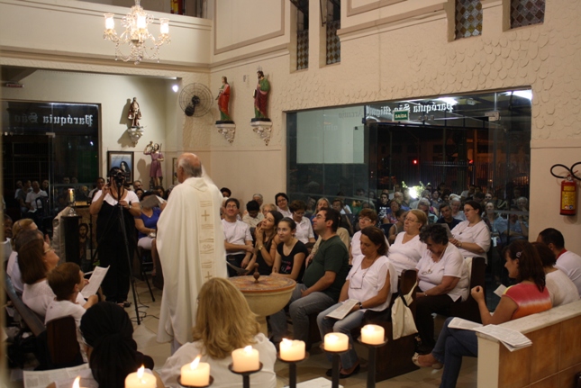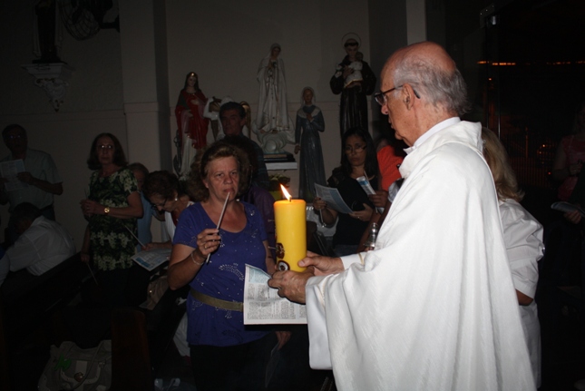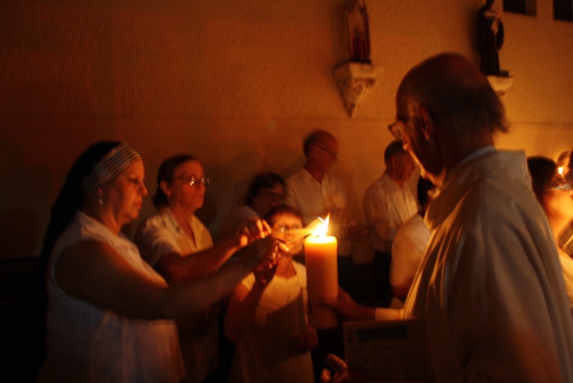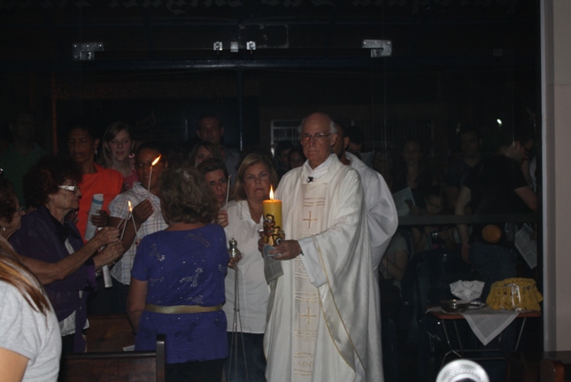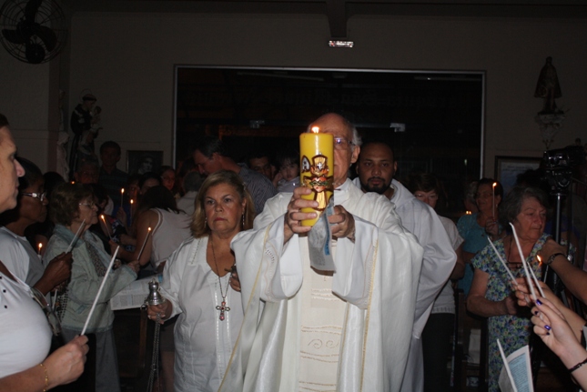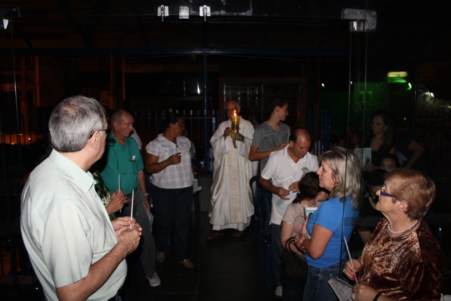 Fogo novo, a proclamação da Páscoa e a exultação da alegria, as leituras que remetem ao tempo da criação, a caminhada do povo escolhido, a vinda do Filho como Redentor e a salvação inaugurada pela Páscoa. Oito leituras, seguidas de salmos e, no Evangelho de Mateus, Jesus diz para as mulheres “Alegrai-vos!”. Celebração marcante também pela renovação do batismo, Aqui no site temos o vídeo com a homilia e também os agradecimentos do Pe Julio, bem como os avisos do final da celebração.