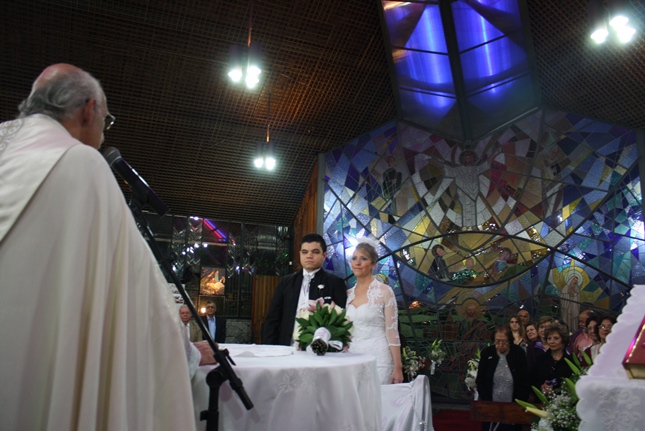 Neste sábado, 15/10/11, João Felix e Ana Karina receberam os sacramentos do casamento, na Capela da Universidade São Judas Tadeu. Padre Júlio Lancellotti celebrou o enlace, ressaltando, que era a união dos doutores da saúde e das leis, dos filhos queridos e amados da Comunidade. Receberam as bençãos da união na casa de Deus. As fotos exprimem um pouco desse momento tão sublime.
