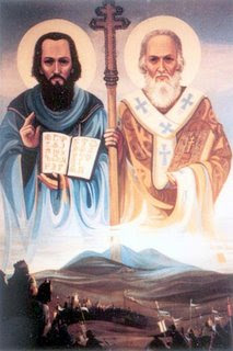 Isto gerou uma grande divergência no meio eclesiástico, pois os ritos eram realizados em grego ou latim, apenas. Iniciando o cisma da Igreja, que foi combatido pelo então patriarca Fócio com o reforço de seu irmão. Os dois foram chamados por Roma, onde o papa Adriano II, solenemente recebeu as relíquias de São Clemente, que eles transportavam. Conseguiram o apoio do Sumo Pontífice, que aprovava a evangelização e tiveram os Livros traduzidos abençoados.
