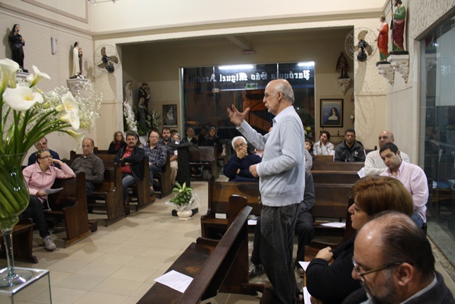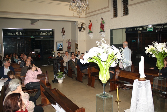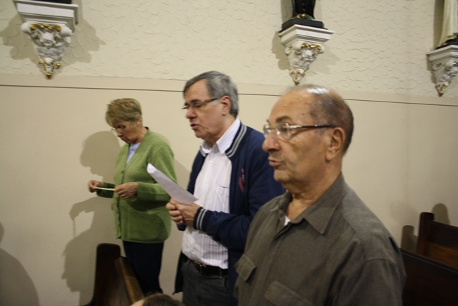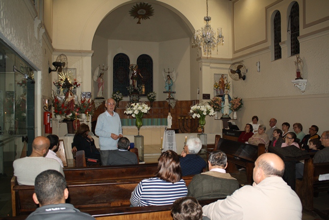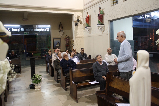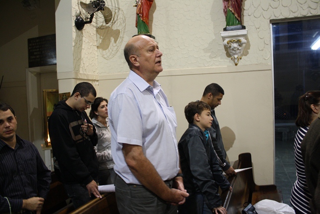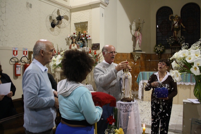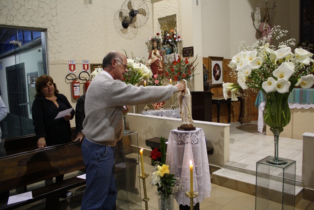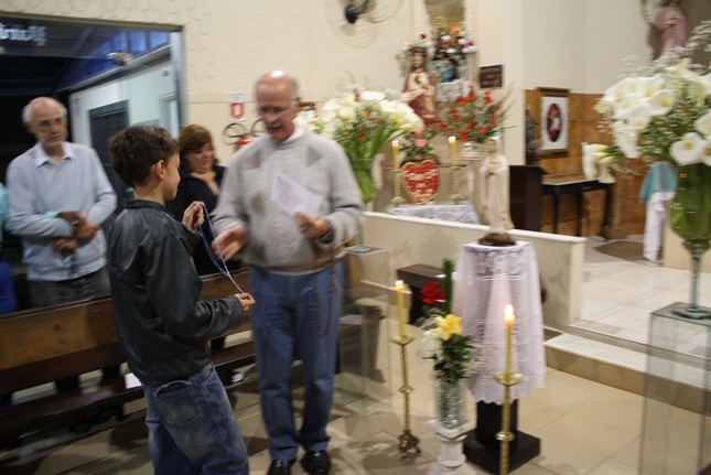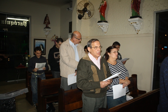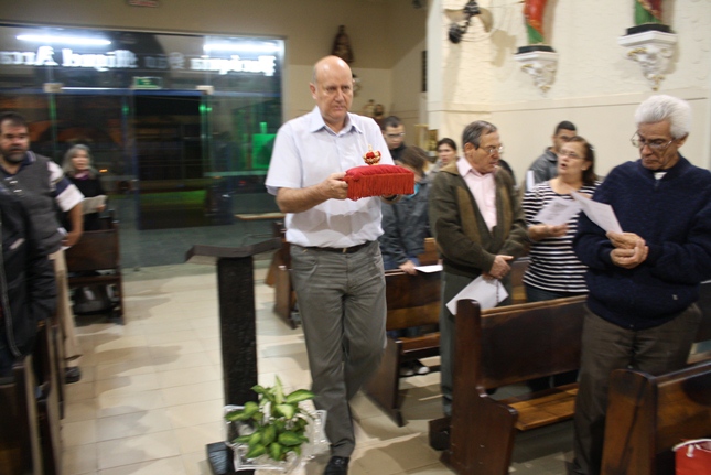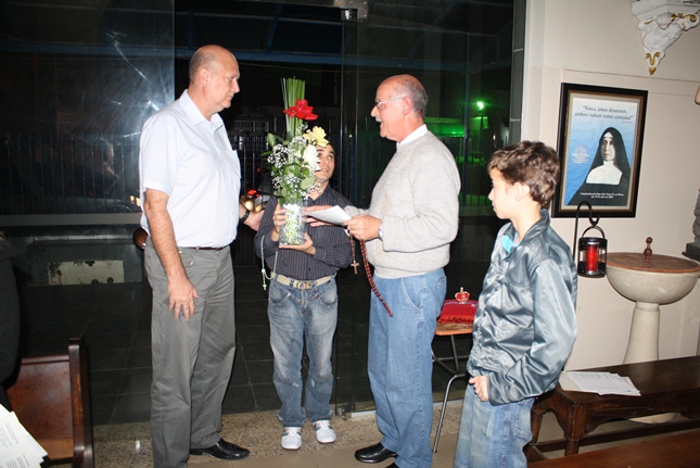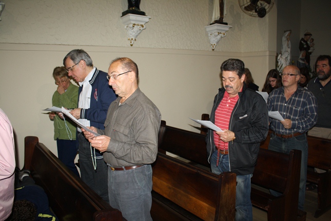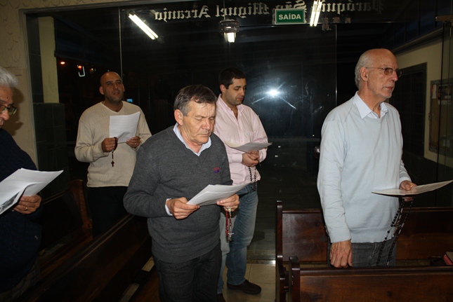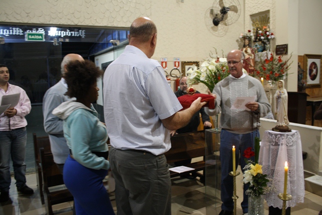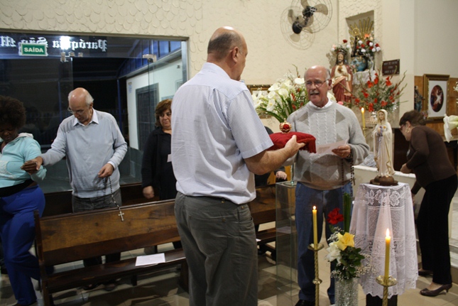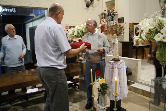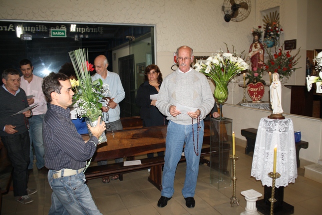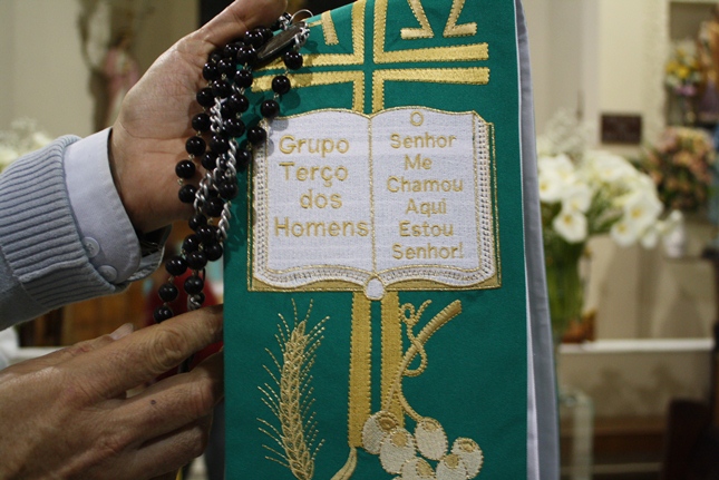 Iniciando, o Padre Júlio, como sempre, fez a reflexão da vida, dos últimos acontecimentos e das situações que marcam a nossa vida. Após o Terço ser rezado, tivemos a coroação de Nossa Senhora e, depois, a entrega da estola ao Pe Julio, que traz a mensagem: Grupo Terço dos Homens – O SENHOR ME CHAMOU – AQUI ESTOU SENHOR.