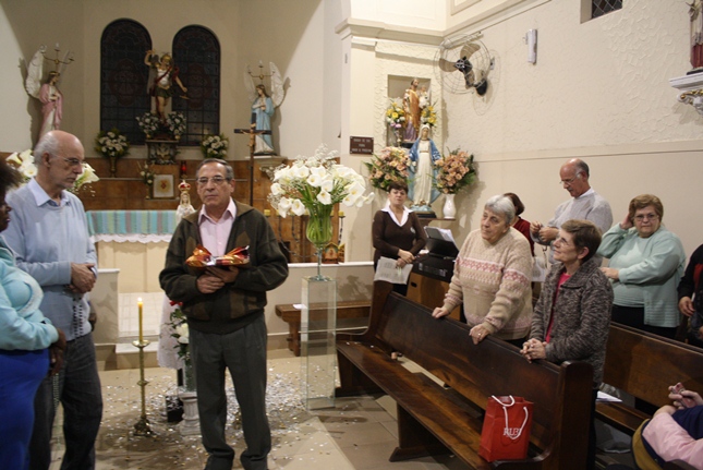 O José Fabretti preparou esse momento com muito carinho e dedicação.  Também, possibilitou que o Grupo entregasse uma bonita estola para o Padre Júlio.