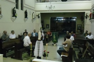 Rezamos com devoção, como sempre, com voz grave e ao mesmo tempo, doce. Os homens da Comunidade São Miguel Arcanjo são perseverantes e o Padre Júlio, fazendo conta do tempo, mostra-se com o olhar para o futuro. Não esqueceu a santidade do beato Francisco Castelló Aleu, lendo uma de suas cartas, à noiva Maria Pelegri.
