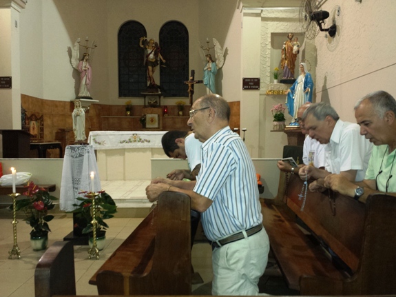 Na sexta-feira, 07/02/14, às 20h30, os homens da Comunidade São Miguel Arcanjo rezaram o Terço. Oração perseverante, conduzida pelo José Fabretti, contando com a contínua participação do Pe Júlio. Momento para a reflexão sobre a Campanha da Fraternidade, que este ano trata do Tráfico Humano – É para a liberdade que Cristo nos libertou (Gl 5,1). Perguntas: O que é trafico humano? O que há em comum entre o tráfico humano e a escravidão? O tráfico humano é um atentado contra a dignidade humana? O que diz a Igreja sobre o tráfico humano? Outras perguntas e reflexões com o subsídio distribuído na Igreja São Miguel Arcanjo nessa noite. No detalhe o sr. Domingos, espanhol que escolheu o Brasil para viver, constituir sua família, caminhar na fé e, sempre, declarando seu amor pela Alice, sua esposa, que está na casa do Pai.