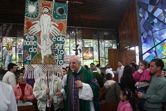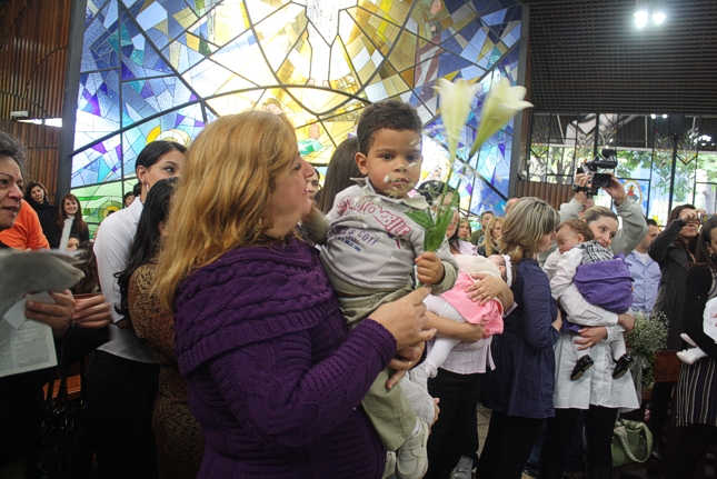 Foi emocionante quando o Respeitado Padre Júlio Lancellotti, segurou o meu neto Felipe no colo, levou-o ao altar e carinhosamente entregou-lhe um Lírio. Não existe presente maior! Que cena maravilhosa. Muitas bençãos a todos!