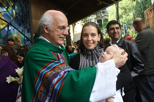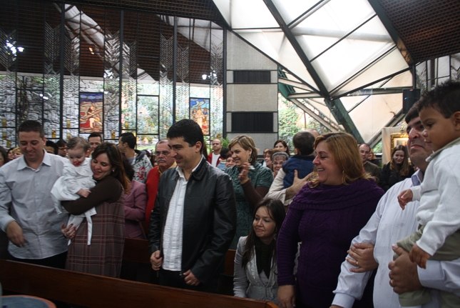 A expressão “partilhar” por várias vezes mencionada pelo querido Padre Lancellotti ao longo da celebração do Batismo e missa, no leva à reflexão, permitindo-nos compreender um significado muito além do gramatical, mais abrangente, aquele que denota dar de si, amar, sentimento presente em todos os pais, padrinhos e familiares das crianças que, na celebração do batismo, estabeleceram com Deus vínculo irrevogável ! De nossa parte um beijo carinhoso para todas essas crianças, em especial para o amado afilhado Felipe !